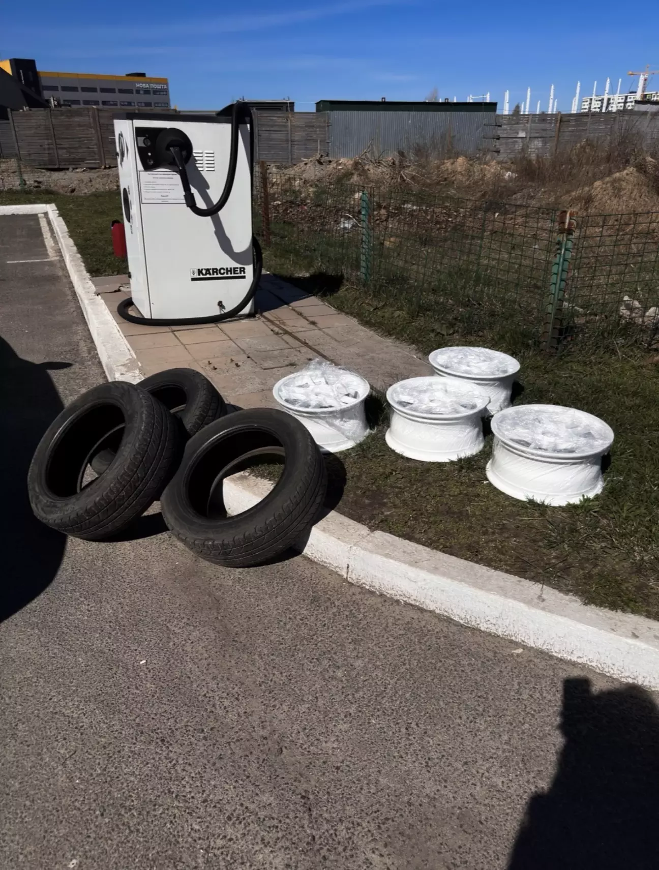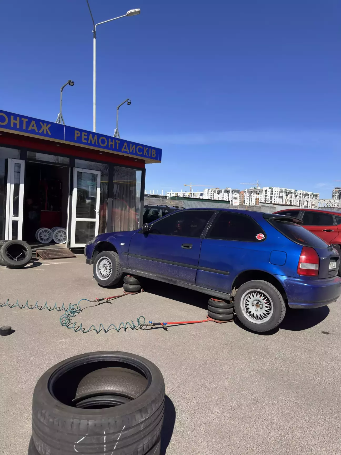 Далі знов до хлопців на шиномонтаж - придєлать соски (бо зрізали при фарбуванні), обути на диски резину, і закинуть то все на сівік.