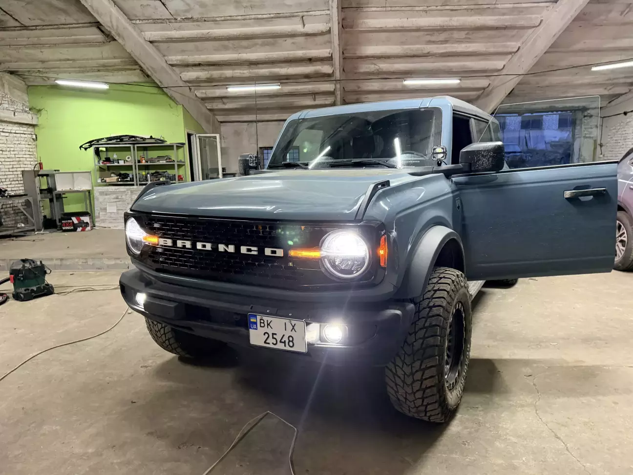 Форд Бронко комплектація Outer Banks. Рік 2024,мотор 2.3.Пробіг 7000 миль)))) Дивний колір але як виявилось це типу замовний колір,так само як і замовний окремо глянцевий чорний дах. По віндовс стікеру машина реально в класній комплектації.Так немає знову блокувань але...і в мене немає зайвих коштів щоб докласти до авто з топовими комплектаціями.