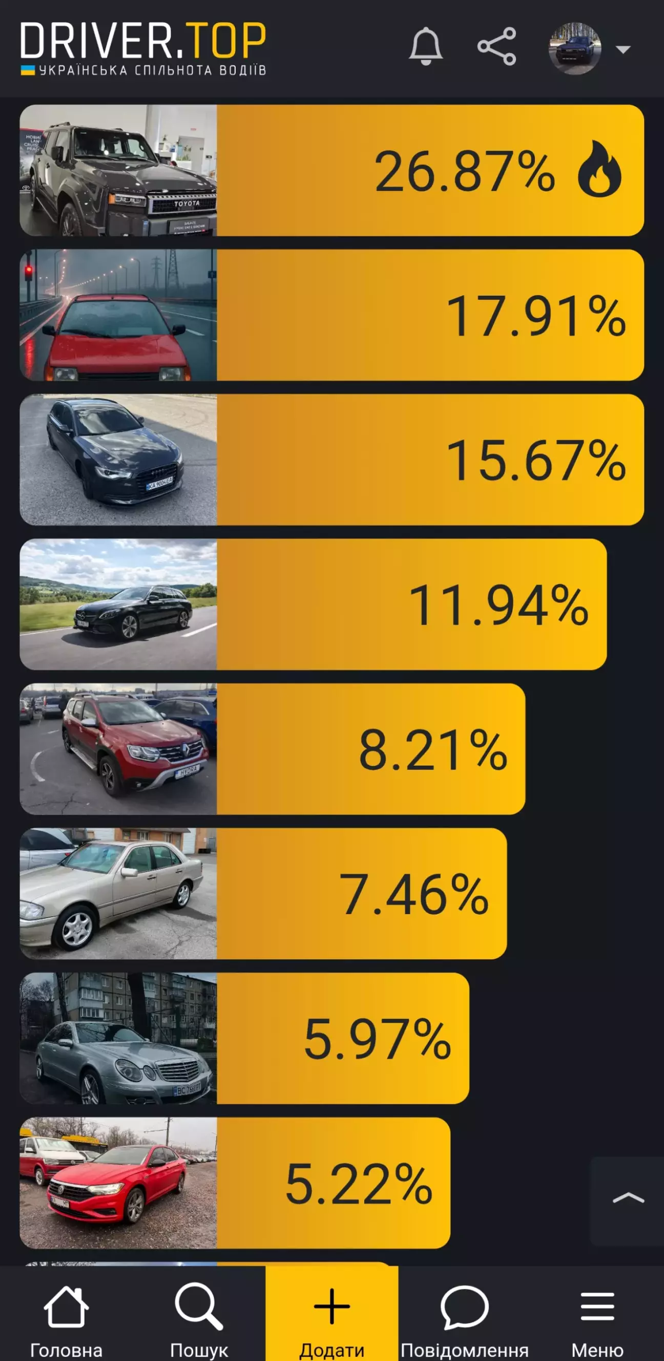 Несподівано для мене моя автівка зайняла перше місце. Чесно кажучи, це дуже приємно.