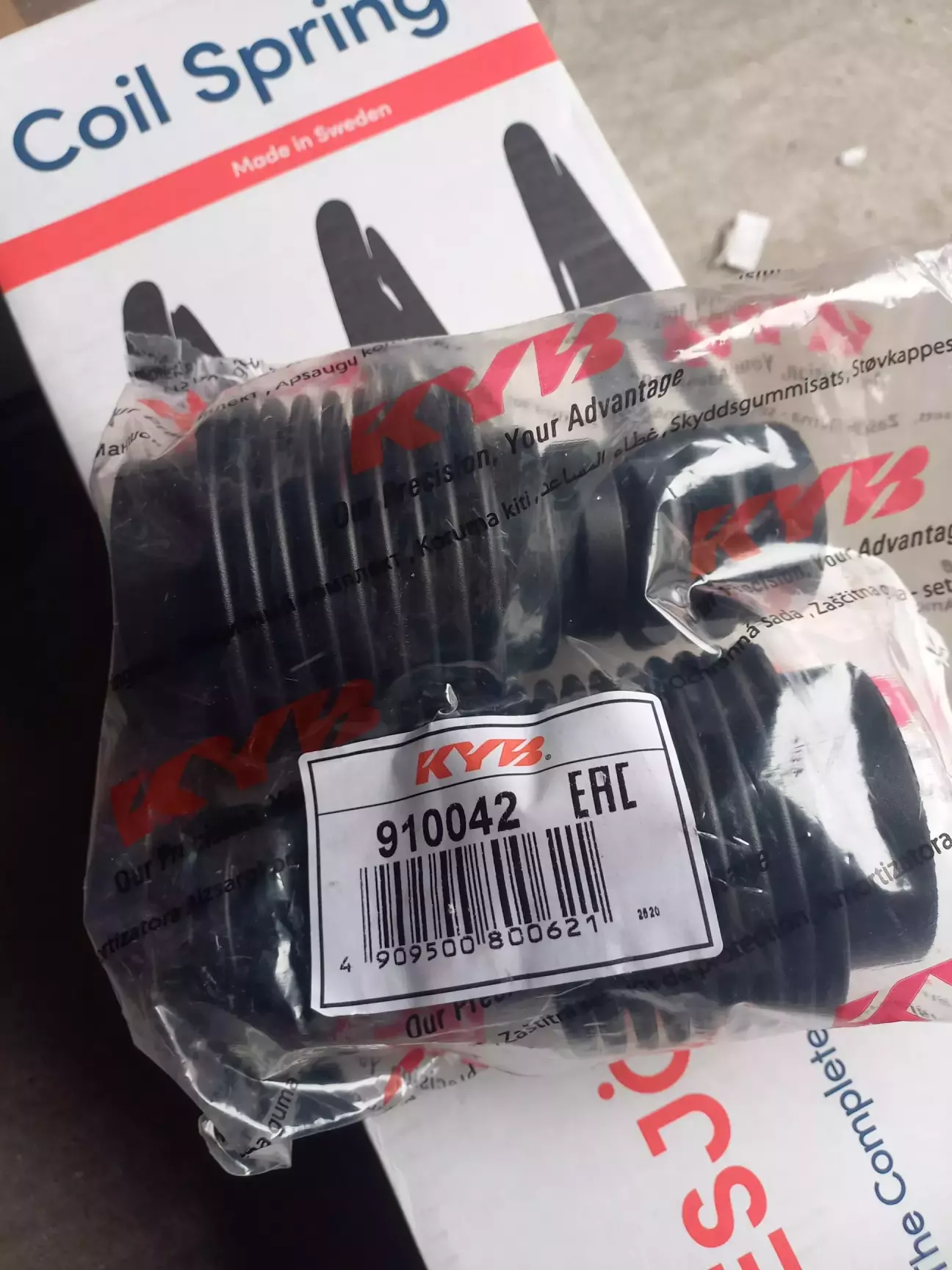 На пружинах Lesjofors (до речі, шведською читається Лешьофорс, але і це не точно, бо різні шведи трохи по різному вимовляють))) ) немає гумових накладок на крайніх витках і доволі дискусійне питання, чи потрібні вони в принципі. В тих же Монро вони також відсутні, а от в задніх оригінальних пружинах є і судячи з вигляду вони там ймовірно ще із заводу. Менше з тим, вивчаючи цю тему наткнувся, як затягують пружини у термоусадку. І вирішив шо мені таке надо ))