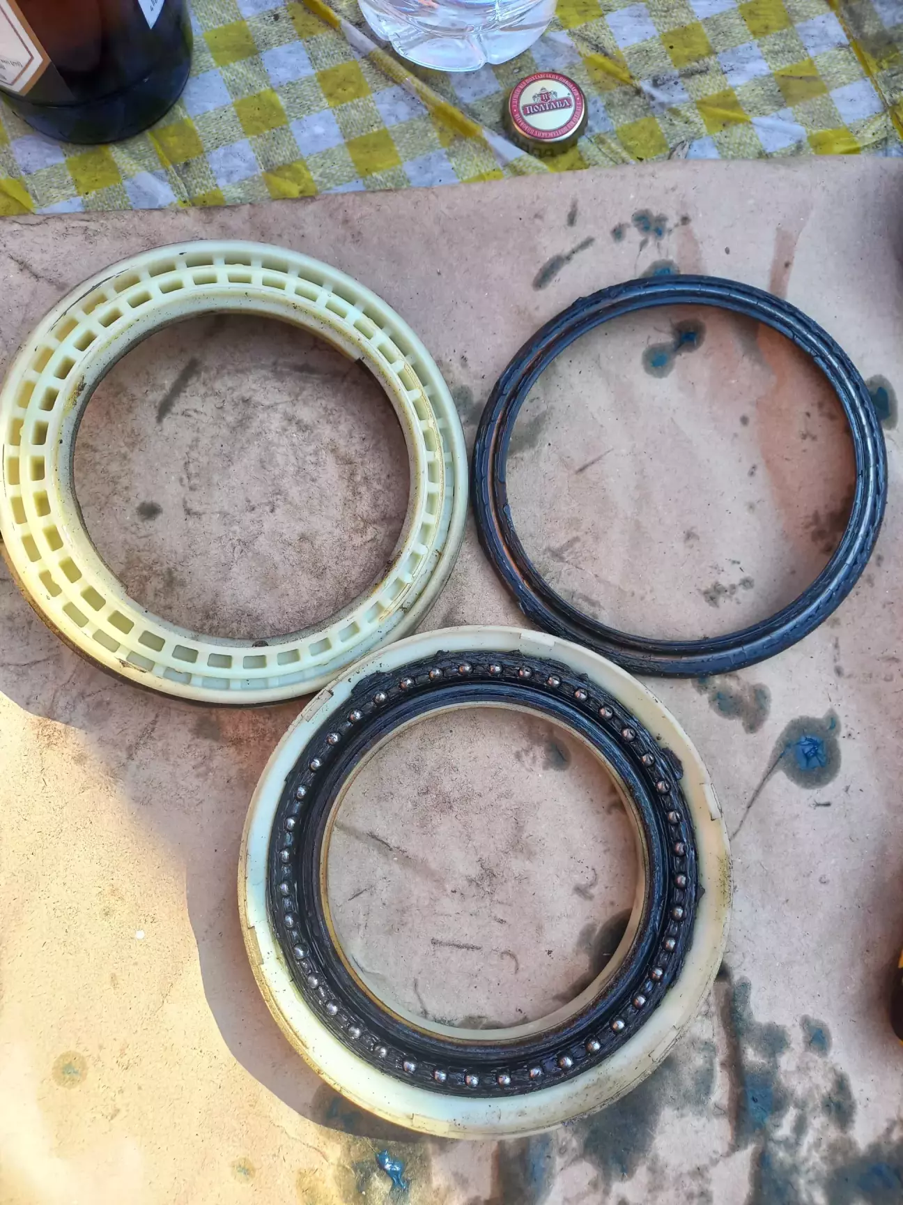 Наступний крок - ревізія опорного підшипника. Розбирається елементарно, оглядаємо на предмет явних дефектів, стару змазку прибираємо, перемиваємо "калошой", заповнюємо новою змазкою.