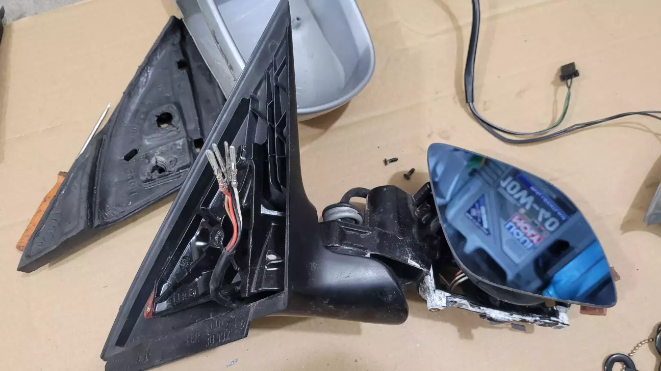 Так як механізм регулювання на новому зеркалі ставиться під іншим кутом, при підключенні пересатвив контакти і ліво право регулюється навпаки а верх низ правильно, може колись перероблю правильно, треба тестером залізти в колодку