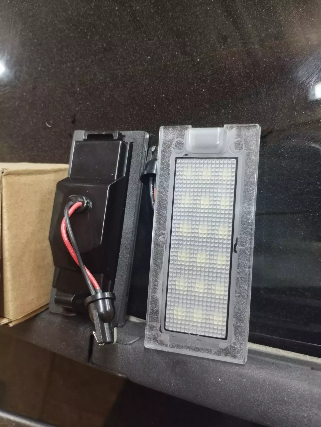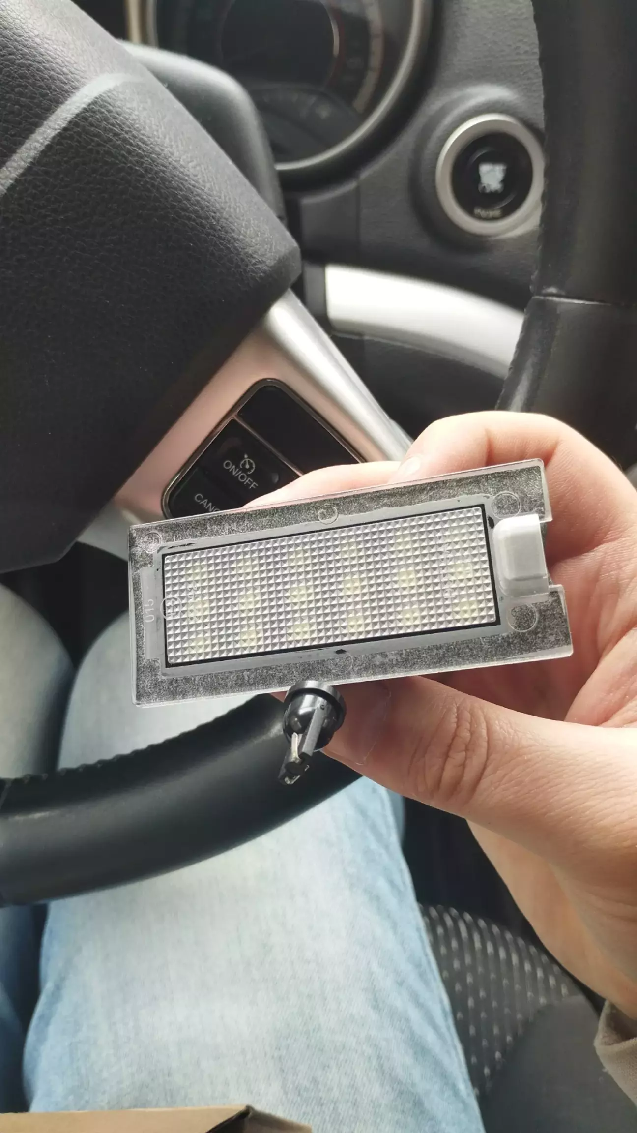 В плафоне стоят светодиоды в несколько рядов, светят ярко. Штекер вместо лампы в штатный патрон вставляем, причем полярность не важна, работают в любом случае. Светят ярко. На всякий случай соединение замотал изолентой , чтоб не окислилось и не запылилось.