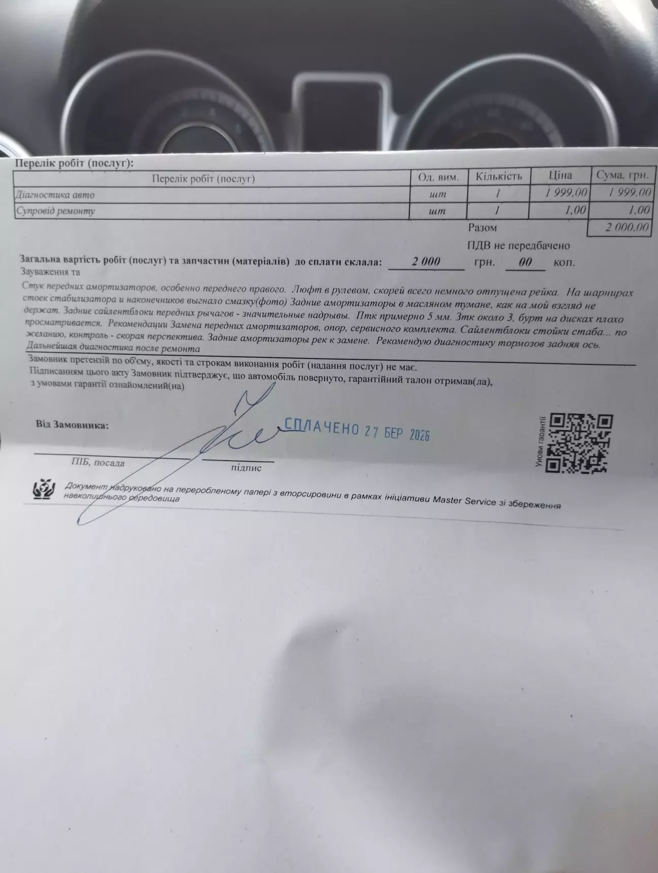 Сначала машину на подъёмнике продиагностировали монтажкой с помощником. Потом под переднюю ось поставили тумбы вибростенда, задние колеса на стационарные тумбы. И начали трусить лево и право по-отдельности. Весь процес длился 1.5 часа. Вердикт в распечатке и с фотками в вайбер. Итого: сайлентблоки задние передних рычагов что муг что trw - шляпа , которая ходит аж 40 т.км и рвется. Звуков не издают но по фото видно что они уже устали.