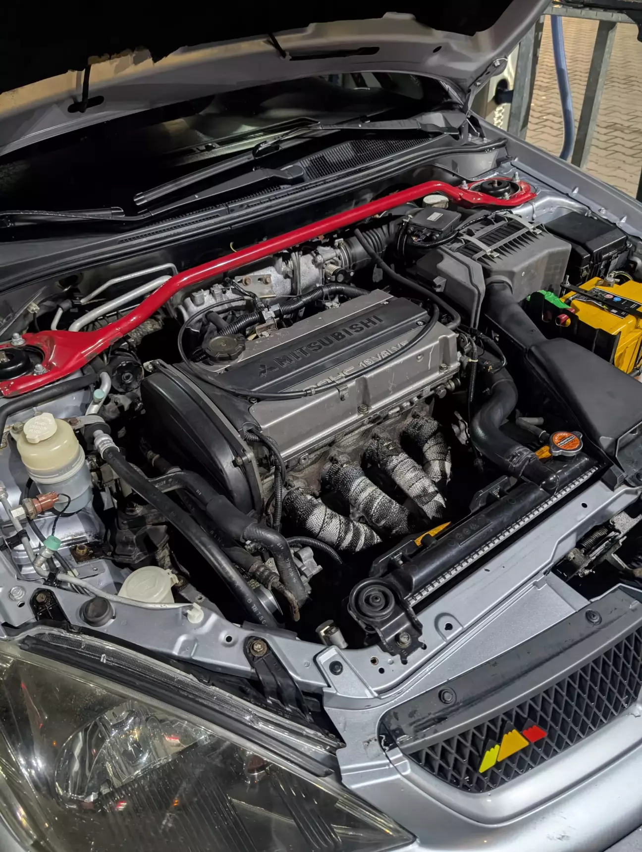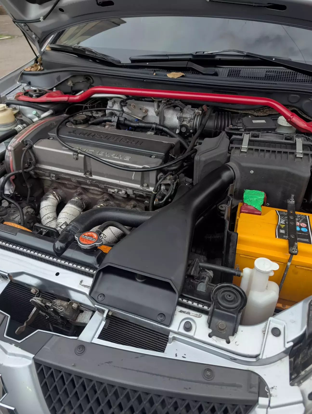 Нещодавно трохи обновився. В зв'язку з тим, що «кастомний» випускний колектор прогорів по задній поверхні, віддав, щоб його заварили, заодно і попросив пофарбувати його, бо обмотка та вже набридла. Ну і ще кусочок пластику за більш ніж 2 тисячі грн під назвою «воздухозаборник від Ralliart версії лансеру з 2,4-літровим двигуном». Думаю, що ефект від заміни тяжіє до нуля, але як мінімум, це виглядає непогано, та і знавці, думаю, оцінять цю дрібницю. Бо колись раніше наче їх шукали і бажали встановити всі фанати лансерів, навіть ті, у кого 1,6-літровий був.