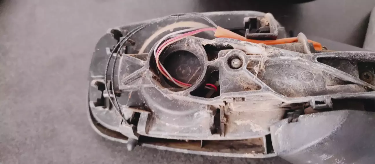 Також замінив датчик зовнішньої температури у правому дзеркалі, бо став показувати на 13-14 градусів вище і почав вмикатися кондиціонер. Через що в салоні стало сильно холодно, бо реальна температура була десь від 0 до 15 градусів. Я його вже міняв роки 3-4 тому, номер запчастини 277228552R, ціна 329 грн, купляв на prom.ua. Принцип розбору такий самий, як і лівого дзеркала. Для заміни самого датчика треба перепаяти його провода.