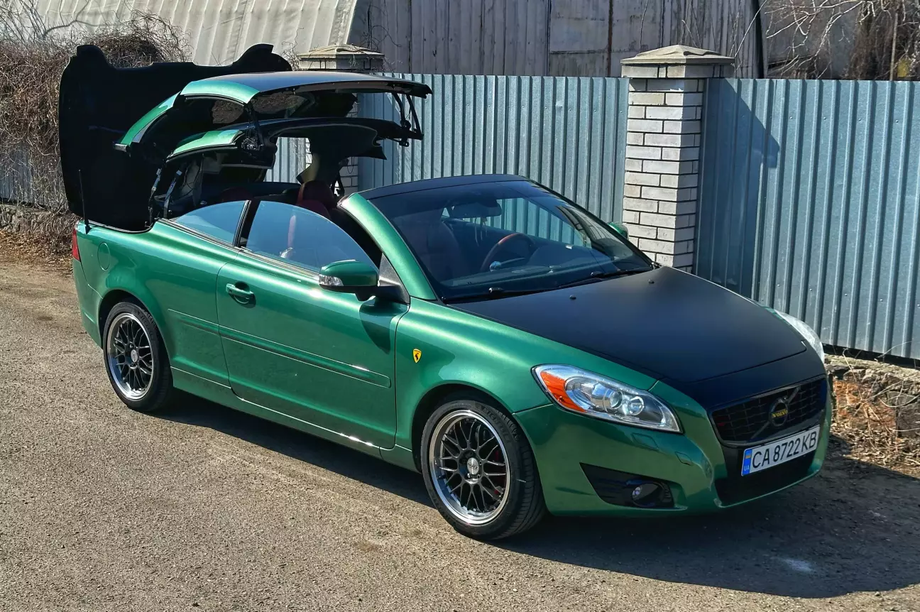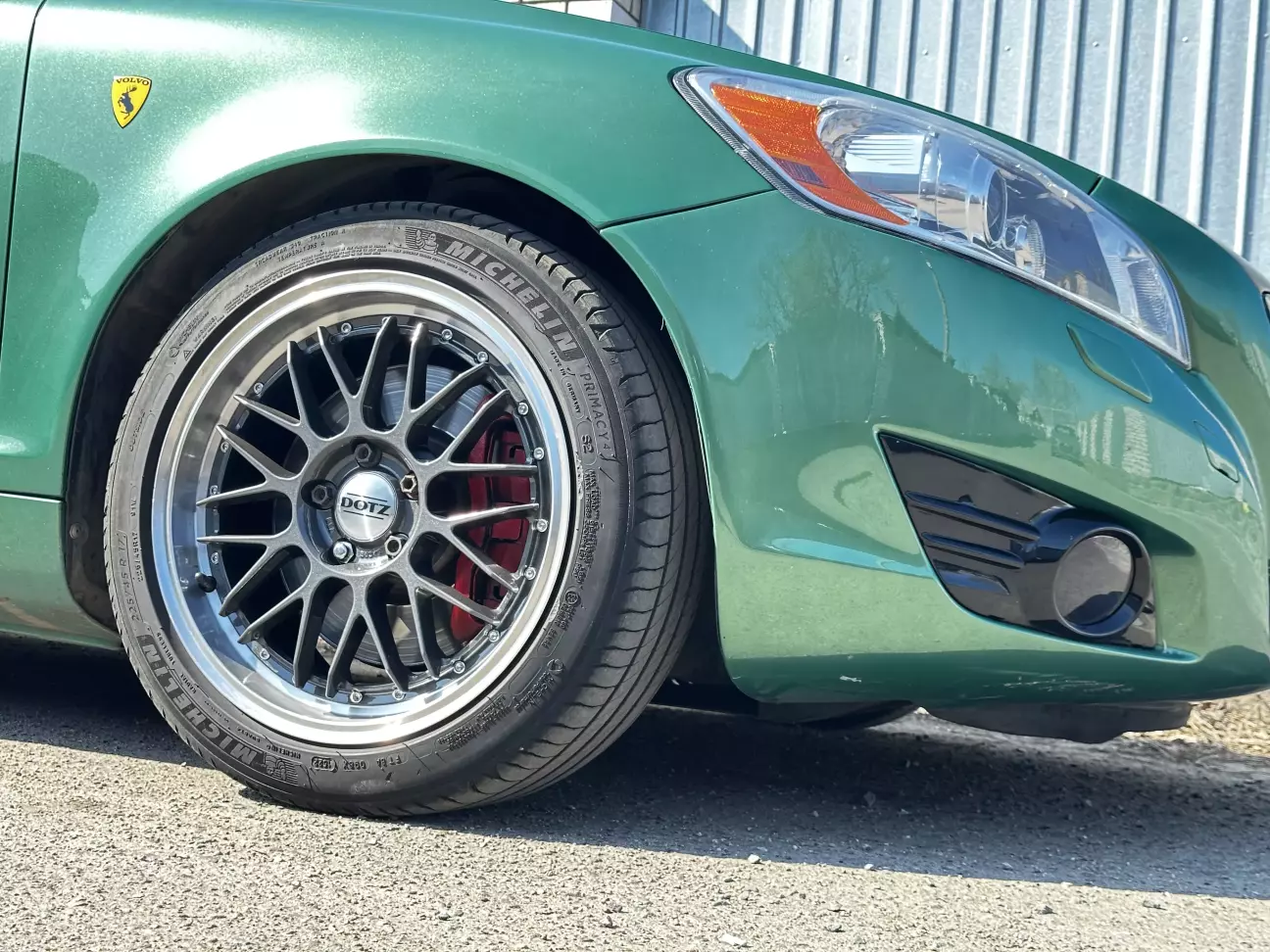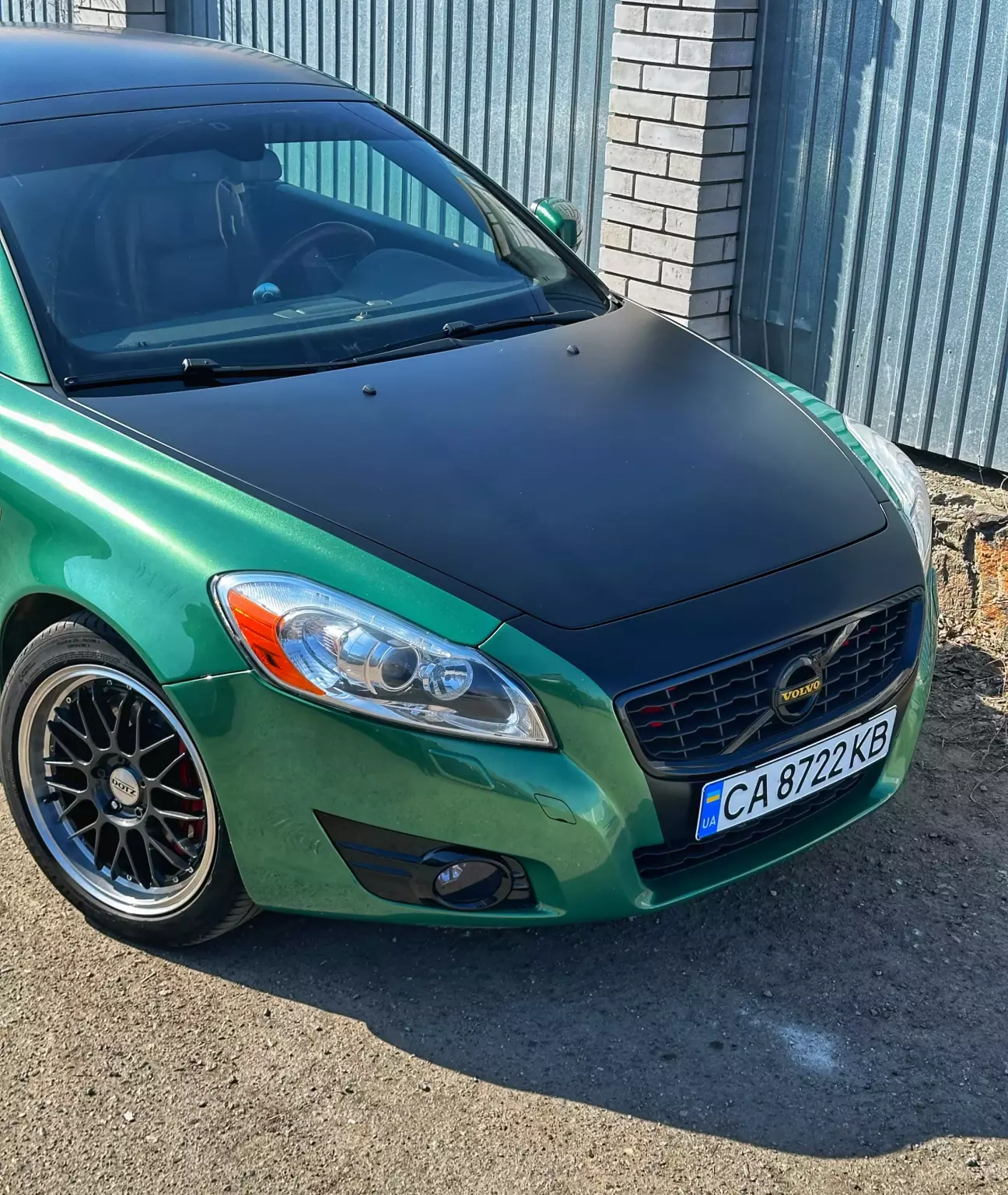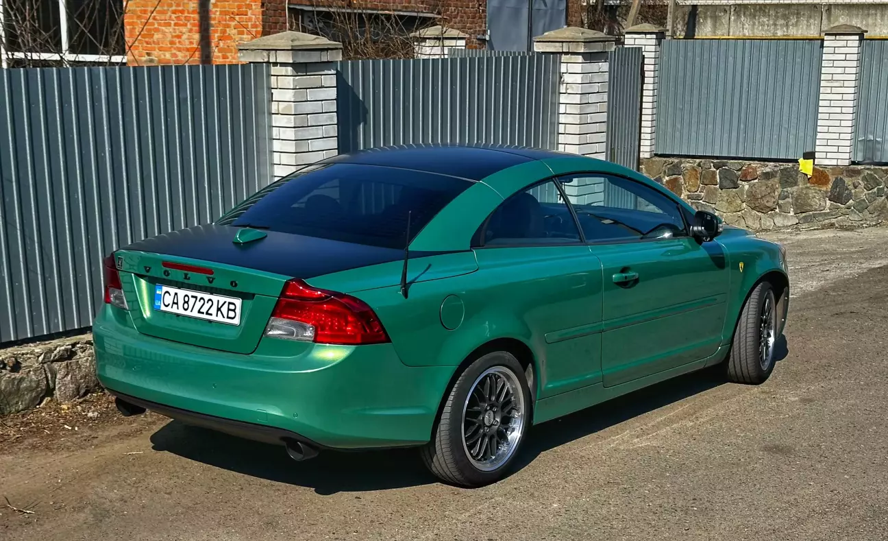 Ці диски їй не дуже пасують. Хоч за попередніми розрахунками мало б бути краще — все ж це колеса для іншої моєї Volvo. Поки що це тимчасове рішення, поки рідні диски на реставрації. Через менший розмір машина стала нижчою і керується трохи дивно. Зате виглядає як іграшка. Фото залишаю на згадку.
