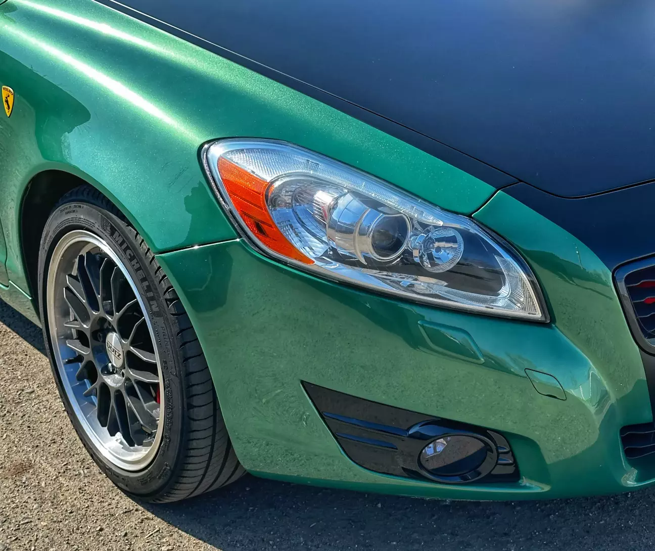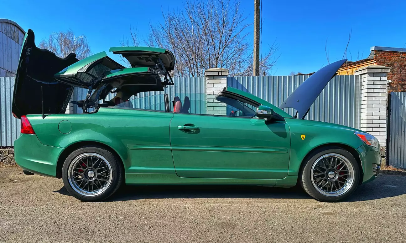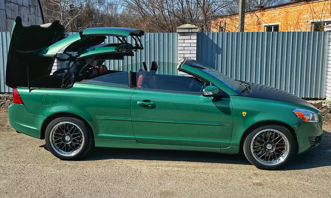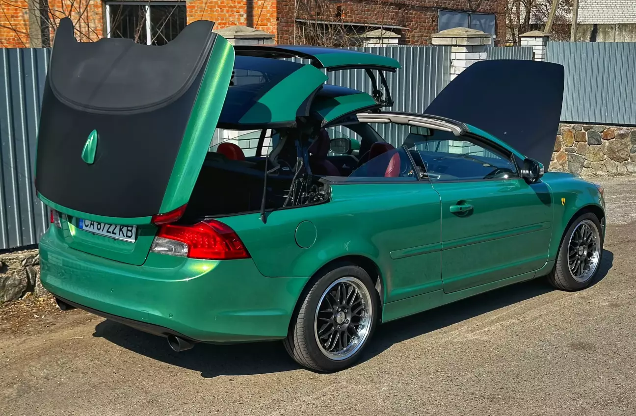 Ці диски їй не дуже пасують. Хоч за попередніми розрахунками мало б бути краще — все ж це колеса для іншої моєї Volvo. Поки що це тимчасове рішення, поки рідні диски на реставрації. Через менший розмір машина стала нижчою і керується трохи дивно. Зате виглядає як іграшка. Фото залишаю на згадку.