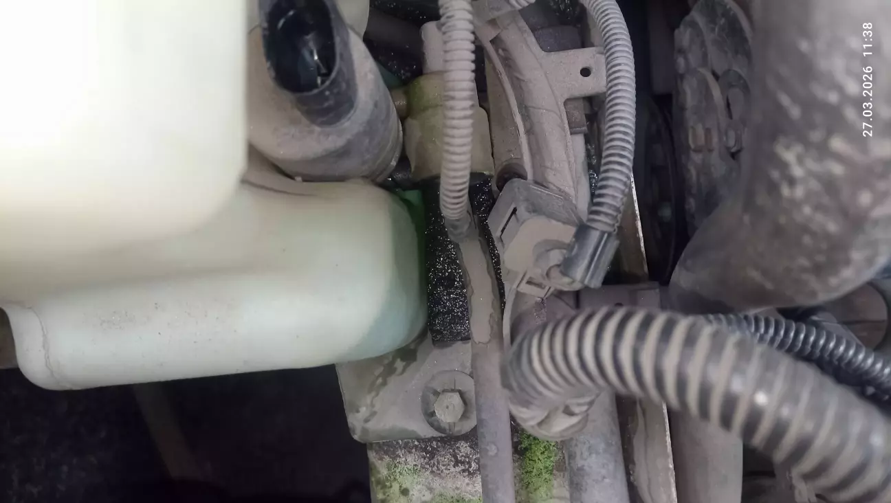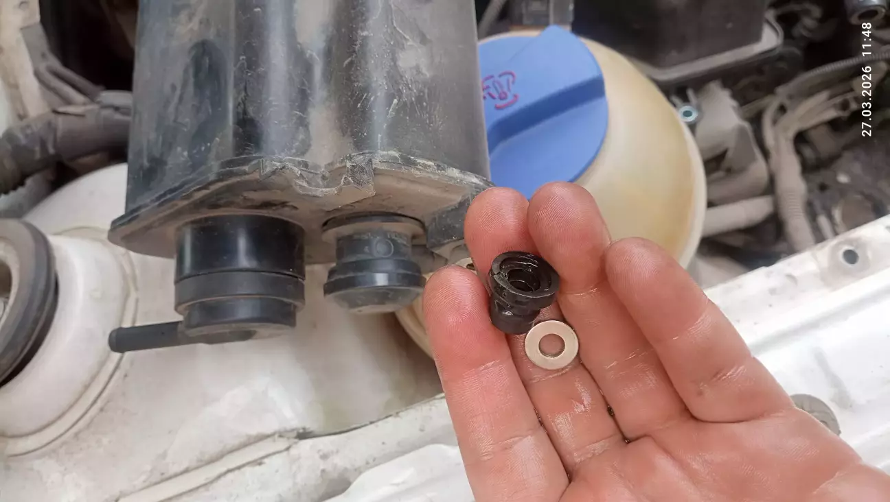 Зняти його виявилося не так просто — заважав адсорбер. Щоб демонтувати адсорбер, довелося спочатку відкрутити бачок ГУРа. Під ним знайшов відсутній елемент кріплення адсорбера, який, як я раніше думав, був втрачений попереднім власником.
