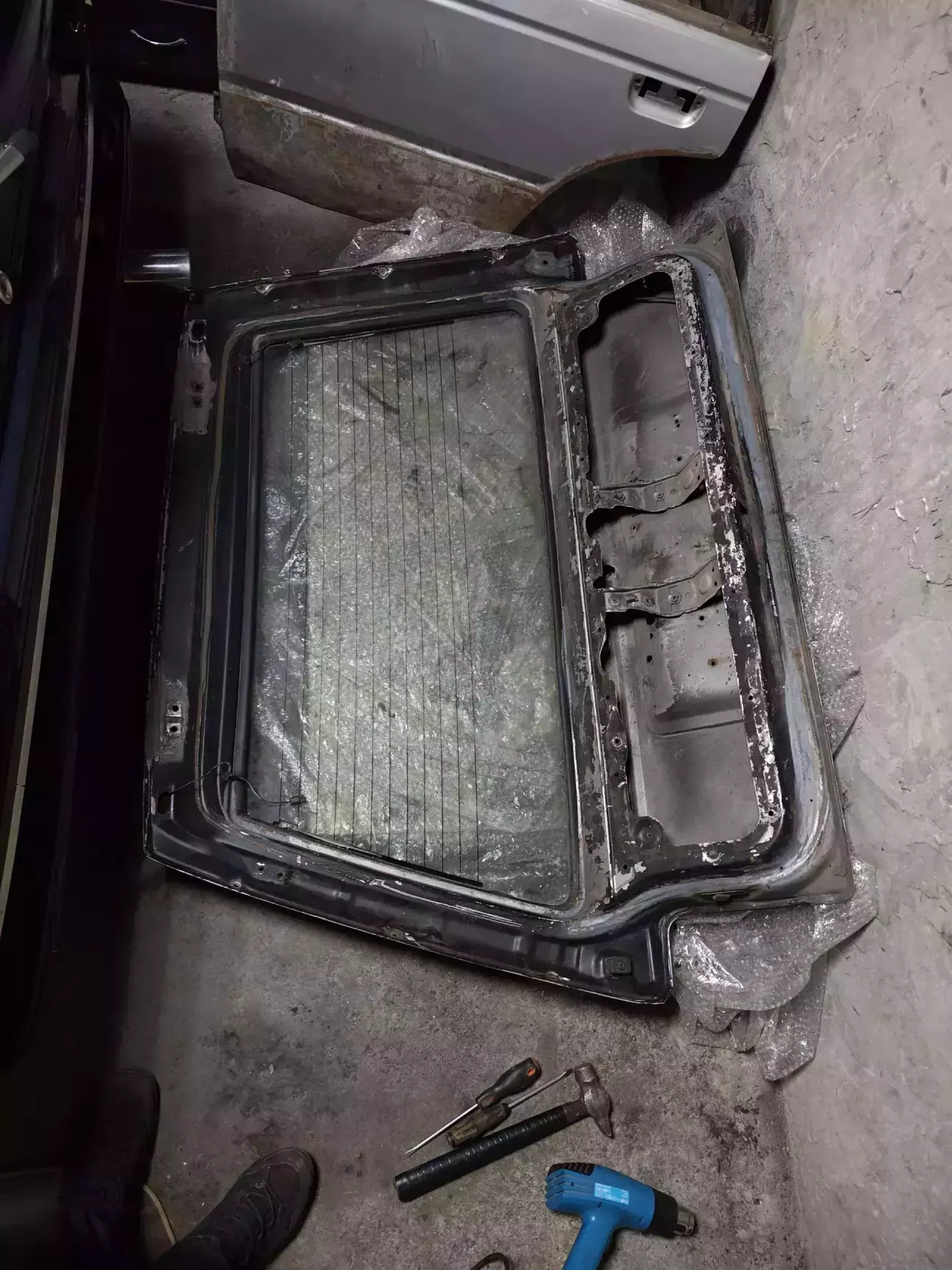 Після розбору вивилось, що ляда-замінник сильно погнила під гумками скла. Зварювальник сказав, що її відновлення йому під силу, але цінник мені не сподобається. Натомість, він оглянув мою і сказав, що здатен її привести до ладу і зробить з неї "дорест" - поміняє місцями гумки, скло, зробить кріплення під хромовані декоративні накладки, піджене кріплення під центральну рамку під квадратний номер і перефарбує. Машину віддав в роботу, очікую...