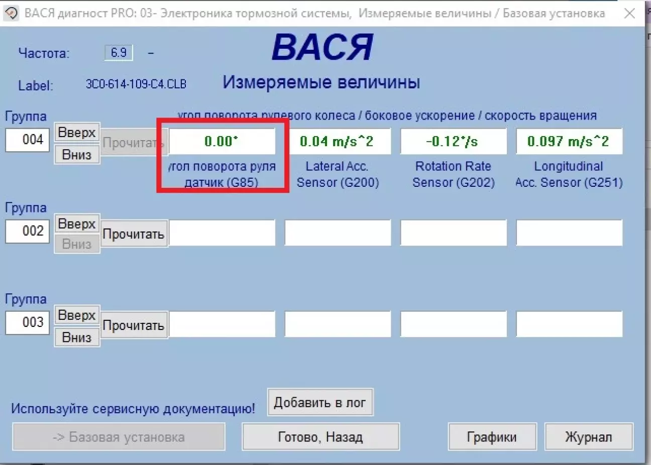 Калібруємо Датчик угла поворота рулевого колеса G85