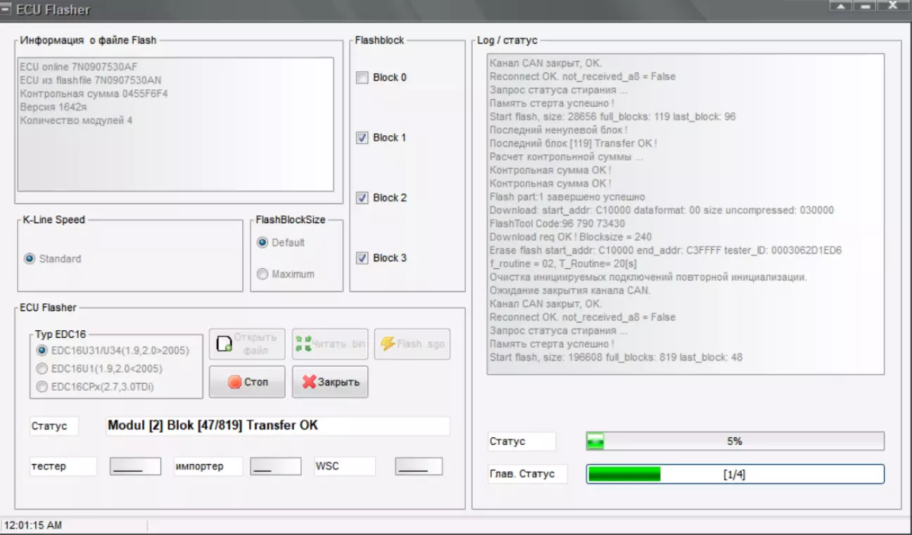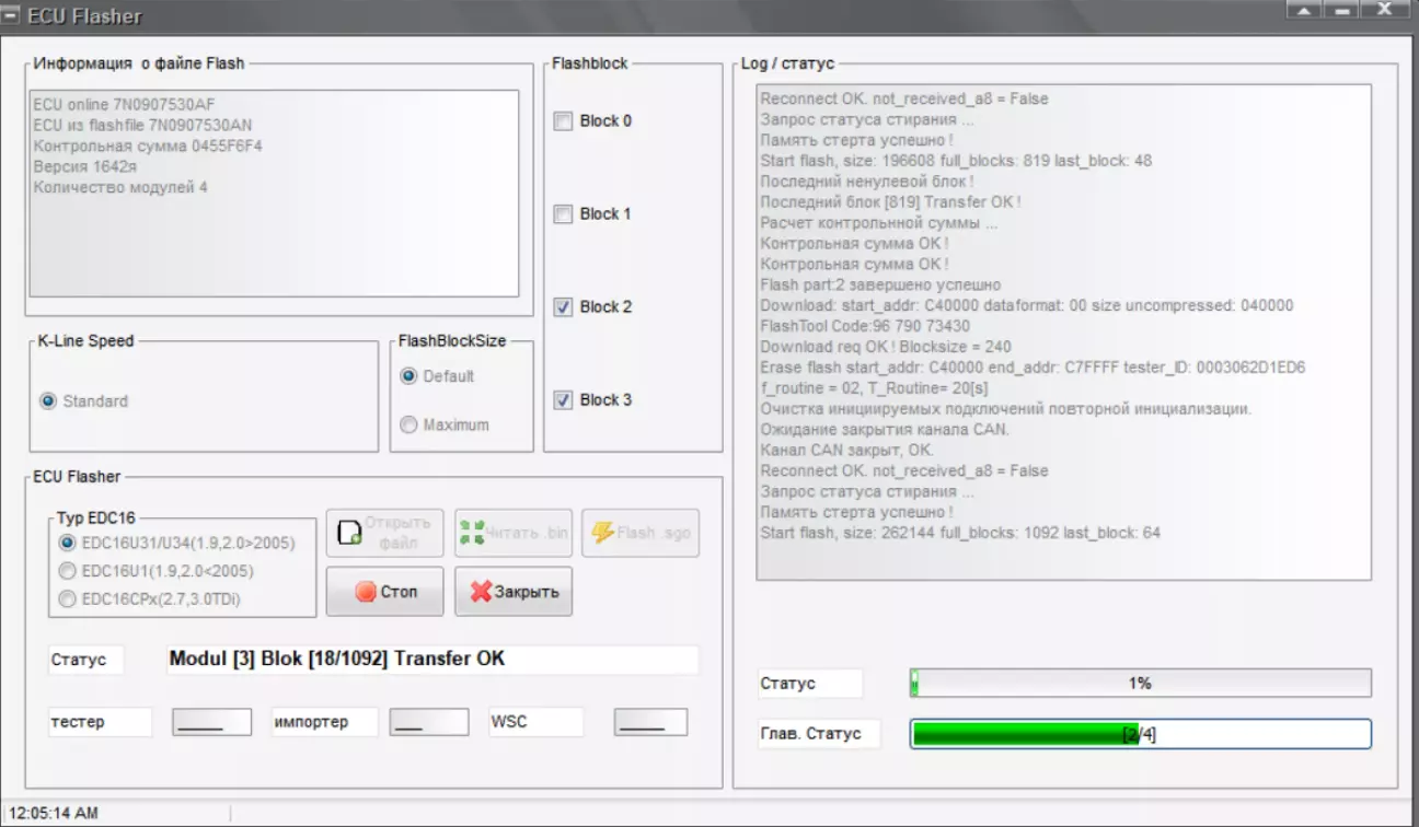 Знову підключаємося до блоку і бачимо, що він став версії АК (був AF) та версія софту стала 1642 (була 1634):