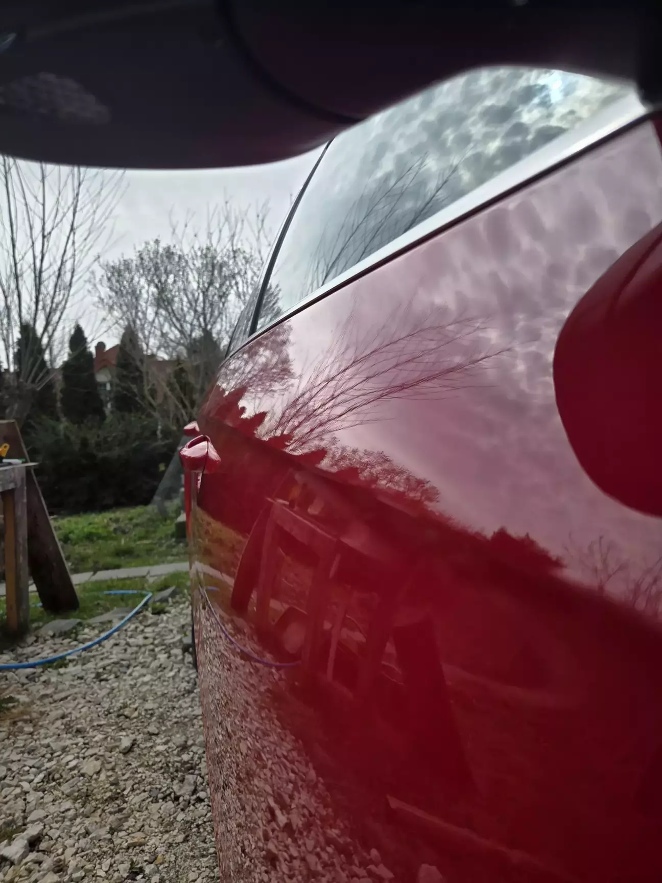 Лак став глибшим, насиченішим, а дзеркальне відображення таке чітке, що в ньому можна побачити кожну гілку дерева в саду.