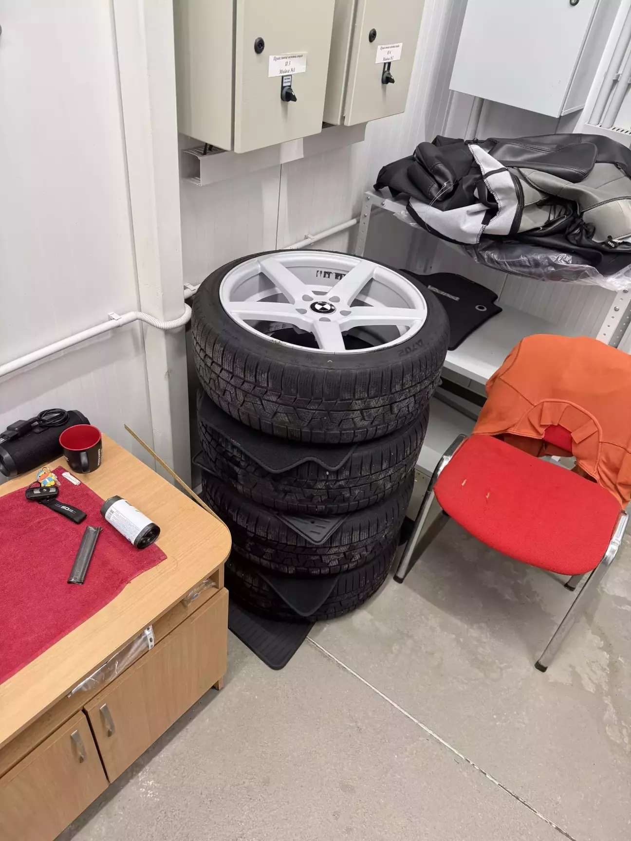 після примірки зняв зимову гуму яка там стояла та віддав власнику(так як мені вона була непотрібна, через те що на 18шках в мене стояла зимова гума), потім встановлення літньої гуми, мийка колес, і нарешті встановлення.