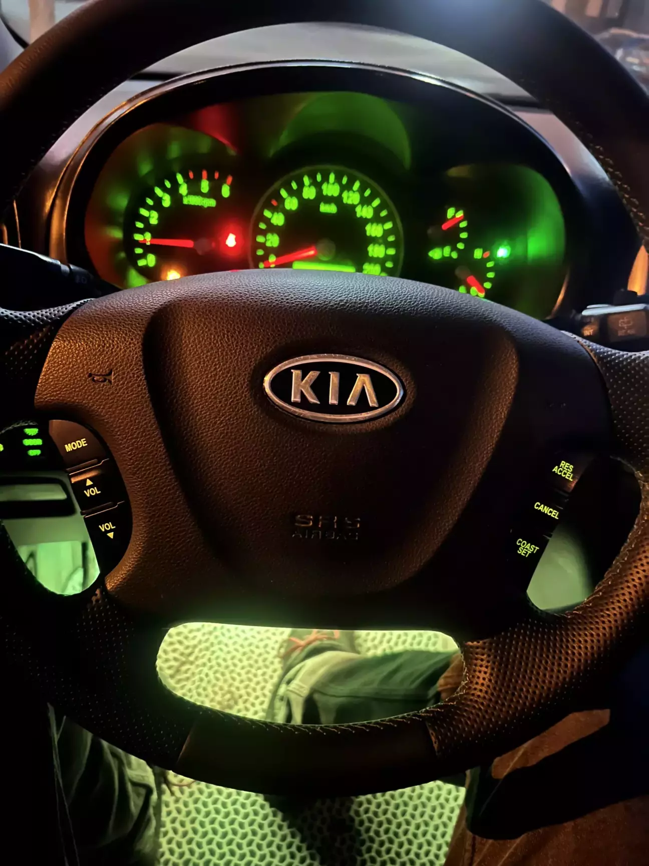як купив кіа то на кермі було встановлено жахливий гумовий чохол що натирав руки ) одразу вирішив що кермо буде перешито ) і ось нарешті все вийшло зробити ! Придбав кнопки на керування музикою і одразу домовився про переливу керма !