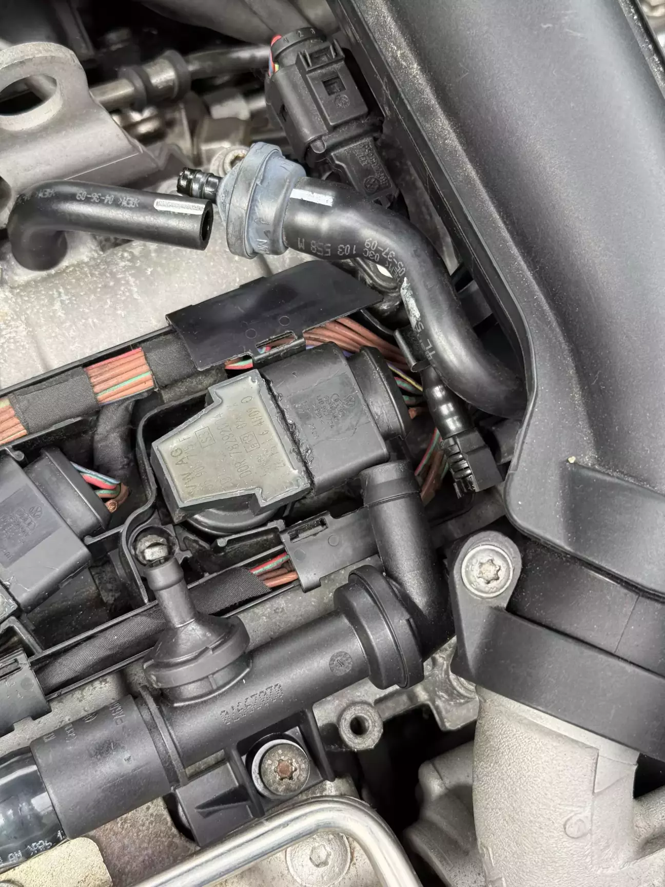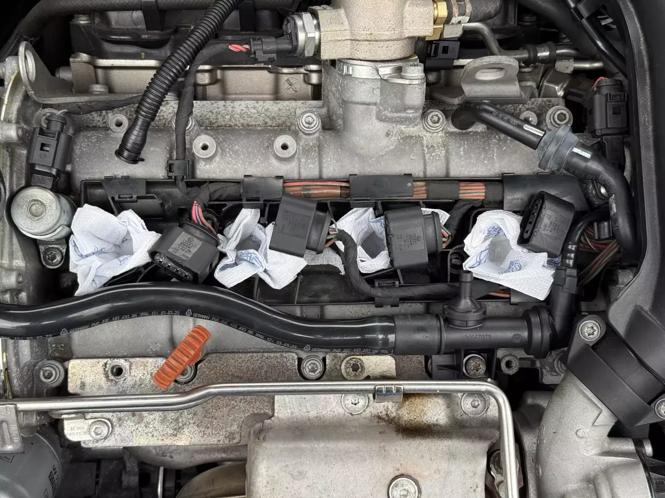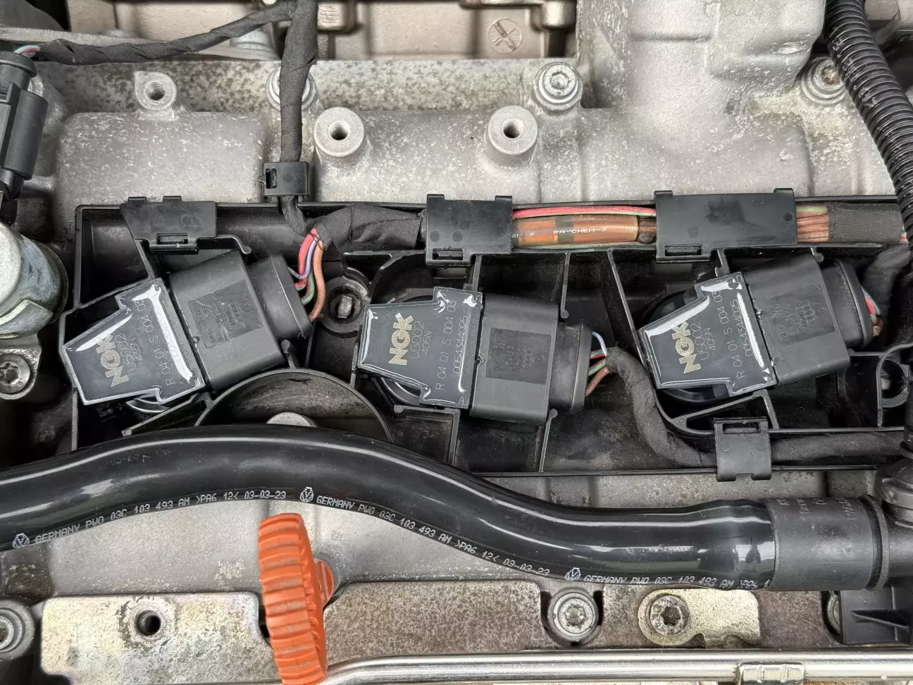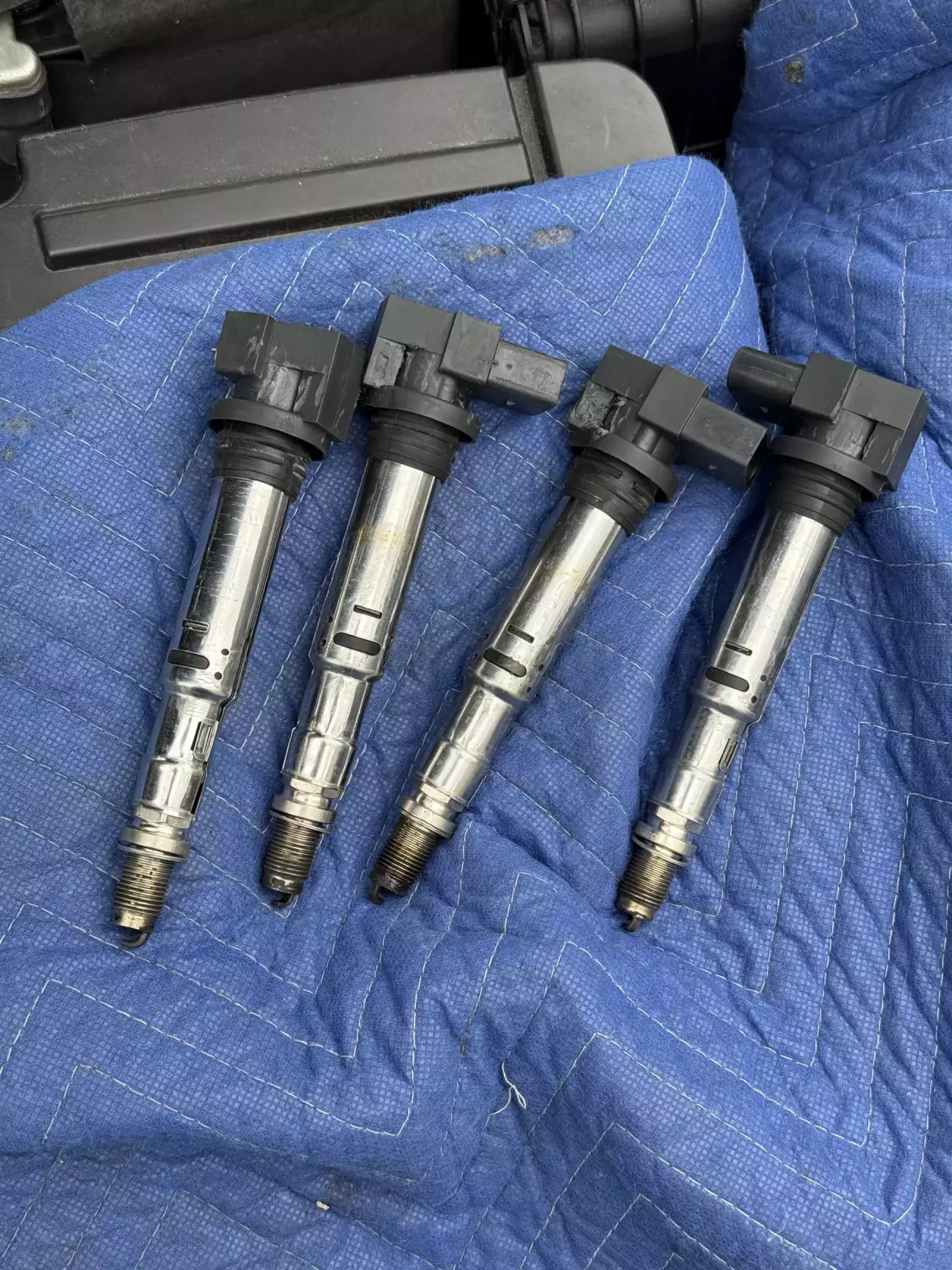 ᅠПродовжую лупати сю скалу. Так як двигун навіть не схоплював, виникло припущення, що проблема може бути в системі запалювання, особливо зважаючи на виявлені раніше недоліки. Тому цього разу вирішив поставити нові свічки та котушки. Хоч зламана була лиш одна котушка, але ну не можу я поміняти одну нову, а решту залишити, щоб потім чекати як почнуть по одній вмирати. Тільки комплектом і з чітким розумінням що все нове і на якому пробігу було встановлено. Запчастини вже на руках, тож почав розбирати. Додатково запланував провести продувку циліндрів, бо як мінімум третій був точно залитий минулими спробами заводити. Чесно, для мене було новиною, що є такий режим на інжекторних двигунах, коли при витиснутій в підлогу педалі газу в камеру згорання не подається пальне і вона просто видувається повітрям. Загалом весь процес має бути простим і швидким, але ж так не буває))