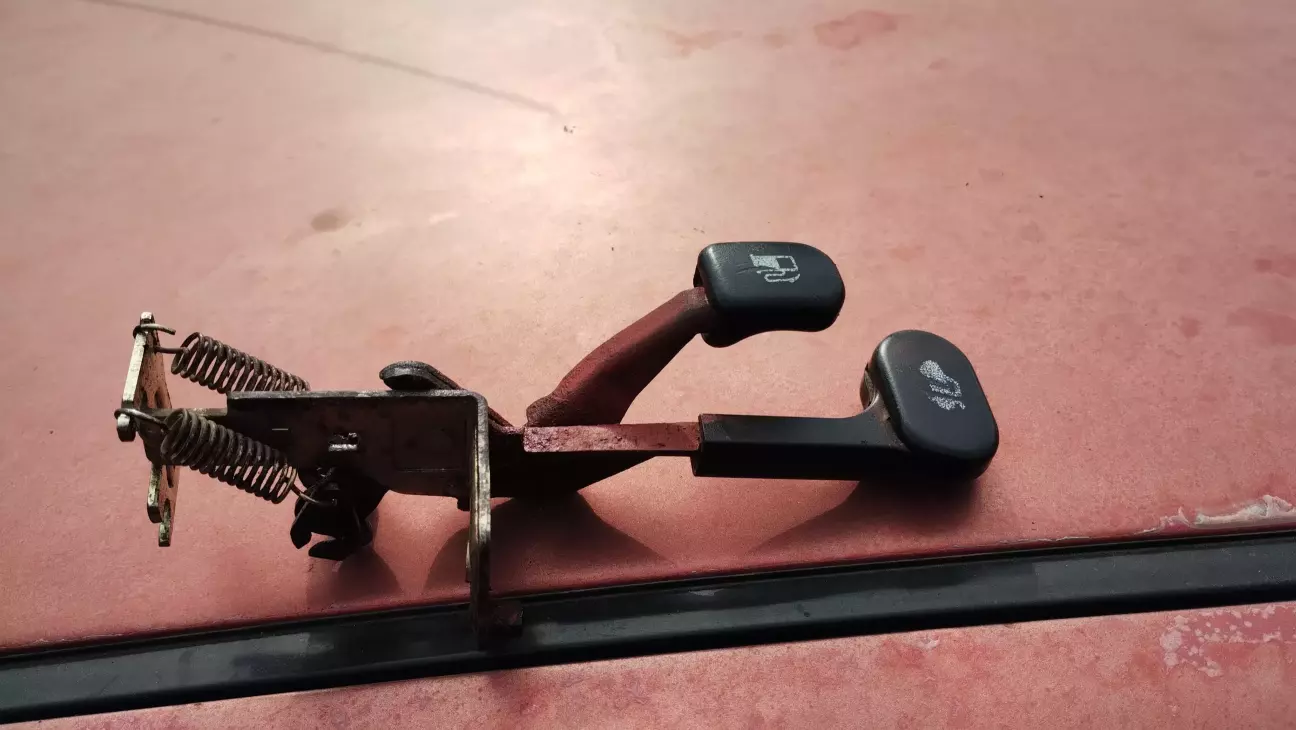 Трохи повернемося назад. Багажник в мене відкривався тільки ключем, через лічинку. Ричаги у салоні були не рухомими. Ні на багажник, ні на лючок заправки. Я був упевнений що там закисли троси. І ось як зняв сидіння, я бачу механізм з ричагами. З'явилась ідеє їх демонтувати зовсім. Бо багажник відкриваю ключем, а лючка взагалі немає і там вже пробка з ключем. Кріпиться механізм ричагів на одному болтику м6.