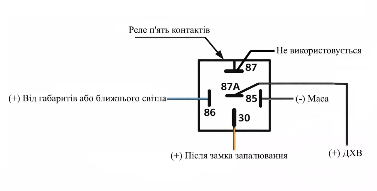 Встановлення ДХВ 2в1 через пʼяти контактне реле.