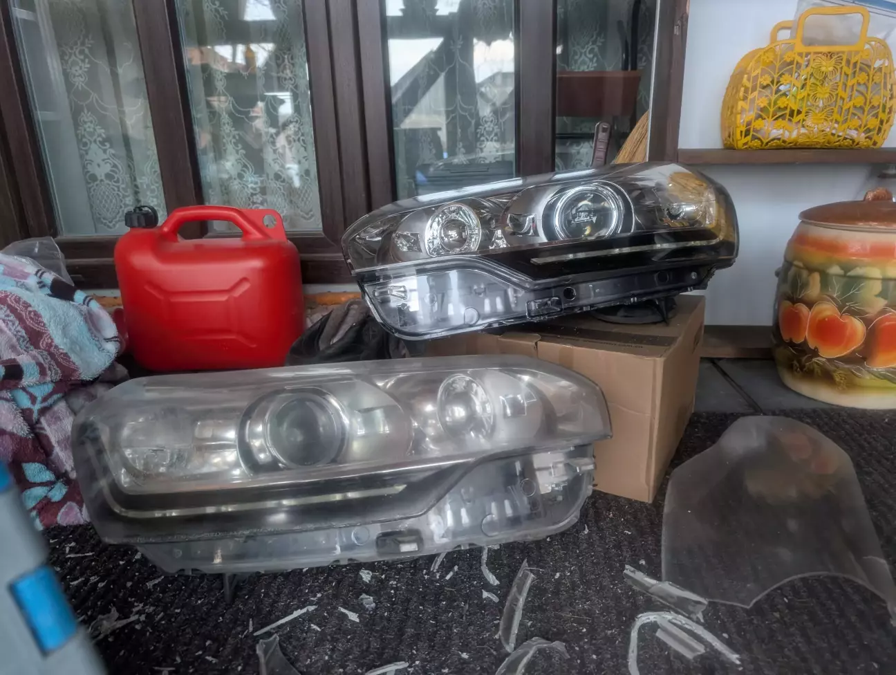 Всім бонжур! Настала плюсова комфортна погода, то ж вирішив провести процедури, що були заплановані ще з грудня, а саме - заміна скла фар, так як мої були вже мутні і в глибоких тріщинах. Поліровка не спасла. Скло замовляв з алі осінню. Цінник був в районі 2500 за 2шт. + 5м бутілкаучукового шнура - 350грн. В додаток до фар вирішив замінити лдс та колодки з тормозухою. Почав процедури з фар. Ооооххх і неприємна то справа. Більше братись за таке не буду) Краще віддати професіоналам, чесне слово. Самий геморой - це зняти старе скло. Довелось його вирізати по контуру гравером, а вже після, підігріваючи піднімати залишки пластику та заводського, кам'яного герметику. По часу вийшло 2 дні. Попутно вимив лінзи, бо теж були в нальоті. В принципі результатом задоволений - 2 останні фото до/після. З'явилась чітка полка світлового потоку та відповідно стало світити яскравіше.