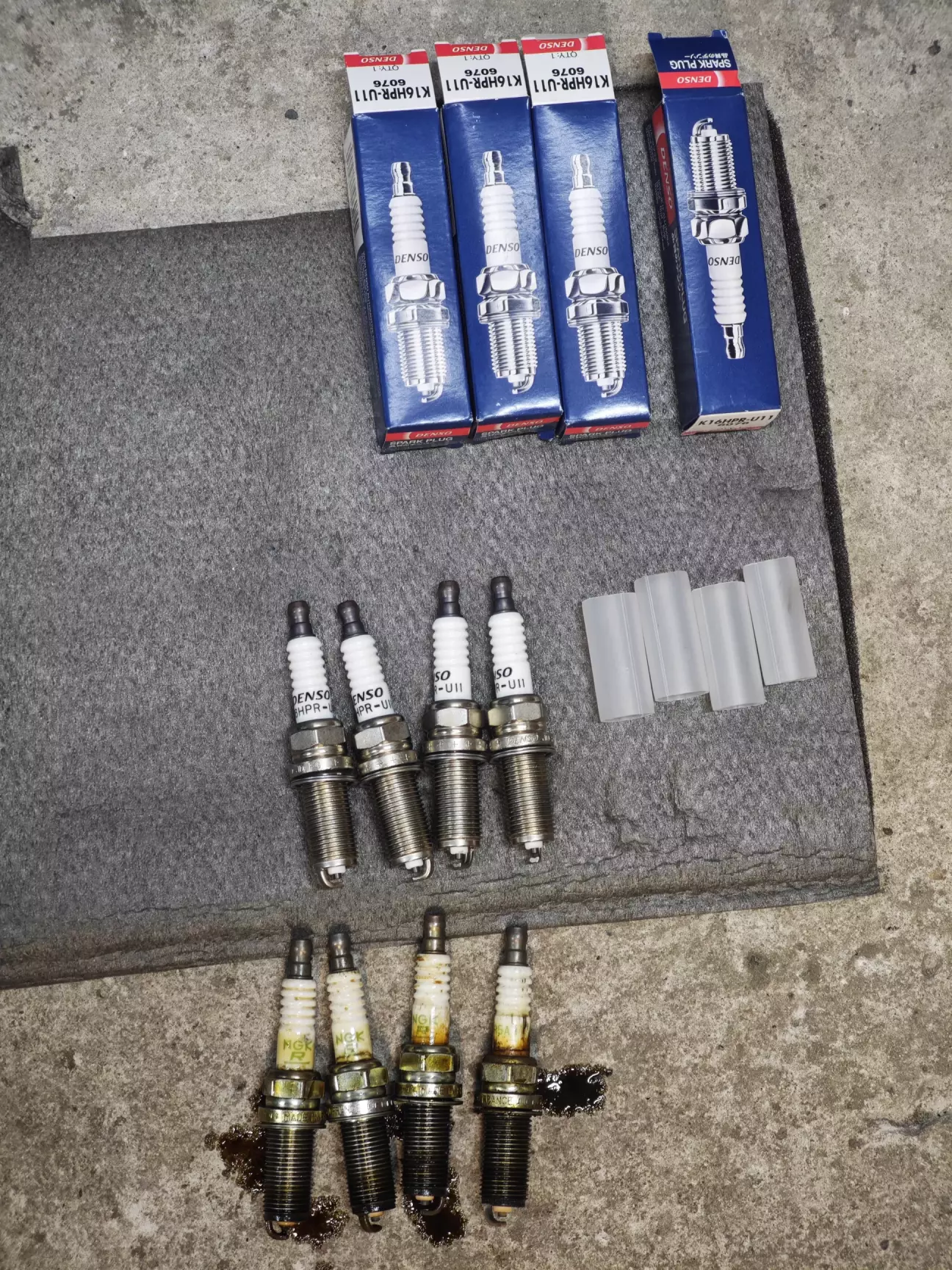 Мастило яке було в колодцях повитерав, промив, просушив і поміняв свічки. Катушку запалення з накінечниками промив карбклінером та обробив рідиною для електроконтактів. Після проведених робіт провів тест драйв.