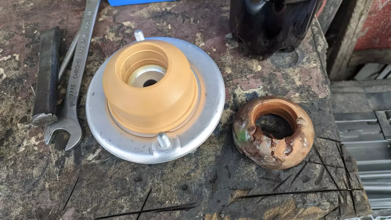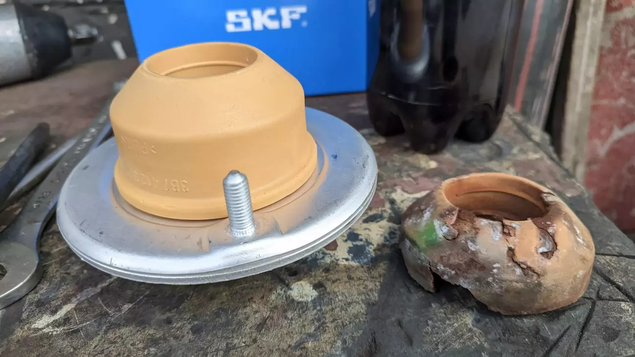 Сталось так, що ще перед зимою стала скрипіти як віз ліва передня частина. Так як осінню і зимою лізти туди я не хотів, візуально передивився важелі та пильники, все в нормі, але кожен стик і вибоїна на дорозі супроводжувалась душероздираючим скрипом, почали вже оглядатися люди. Скрип доходив десь з-під двірників. Так як підвіска у нас специфічна відразу замовив відбійник амортизатора з тарілкою SKF VKDA 35124. Тепер, коли настав час їздити з відкритим вікном нерви не витримали, поїхав до товариша на СТО. Скинули аморт, від відбійника залишилось лахміття, а шток аморта виявився з люфтом, та ще й газ з амортизатора за 22 роки вийшов (хоча на їзді й не відчувалось, пружини також підсилені) чудом у нього знайшлися майже нові аморти SACHS 290 186 пакет "Погані дороги" саме такі як у мене з заводу, які на европейську або спортивну підвіску відповідно не стають, тому мало кому й потрібні. Збираємо стійку, ставимо на місце. Нічого не скрипить, автомобіль навіть рулитися почав по іншому. Залишилось замінити і праву сторону, відбійник вже замовив. Усім рівних доріг та мирного неба!