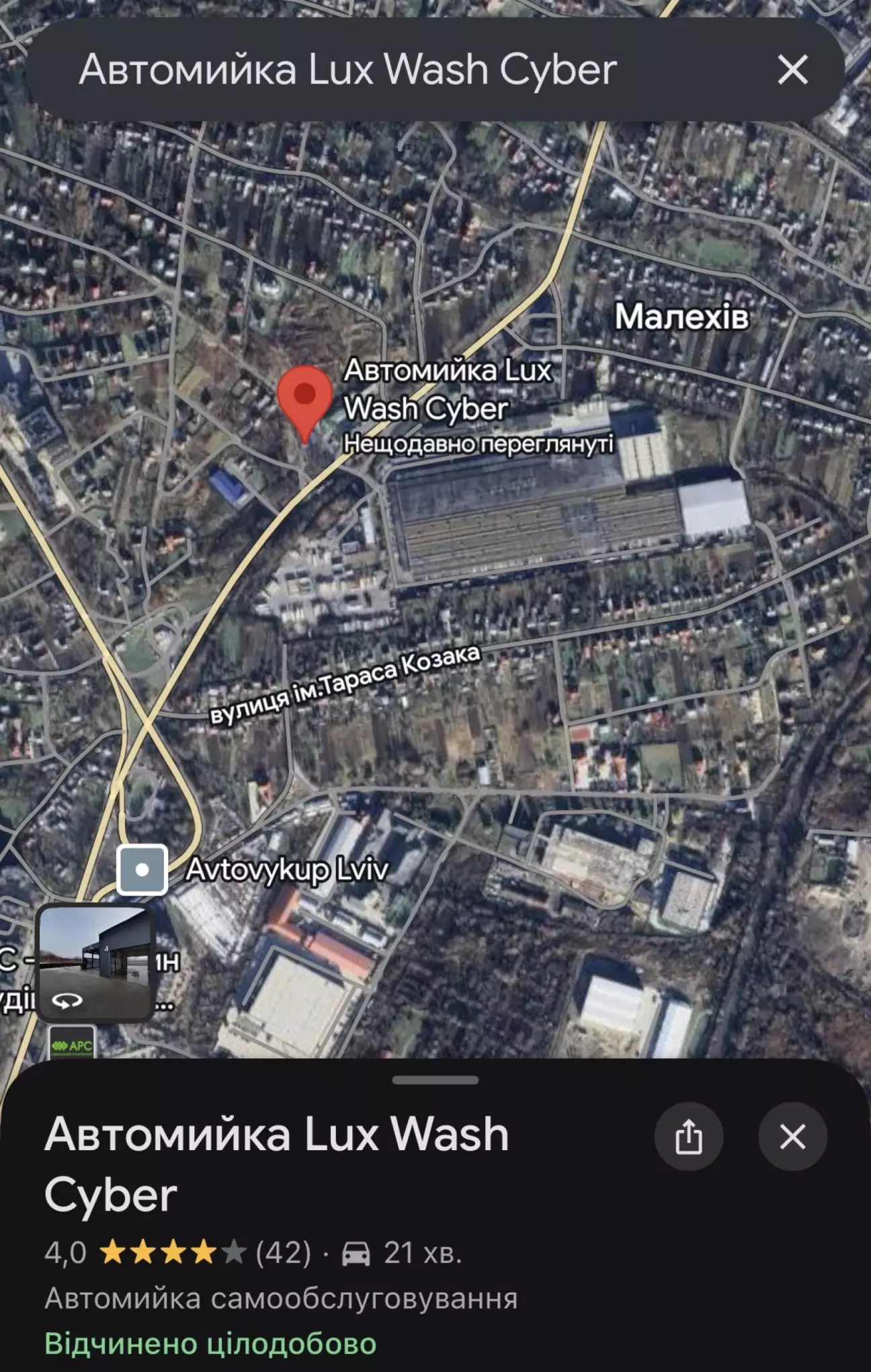 Був недалеко від галицького перехрестя, тож вибрав цей люксвош: м. Львів, Київська, 5А, Малехів, Львівська область, 80383