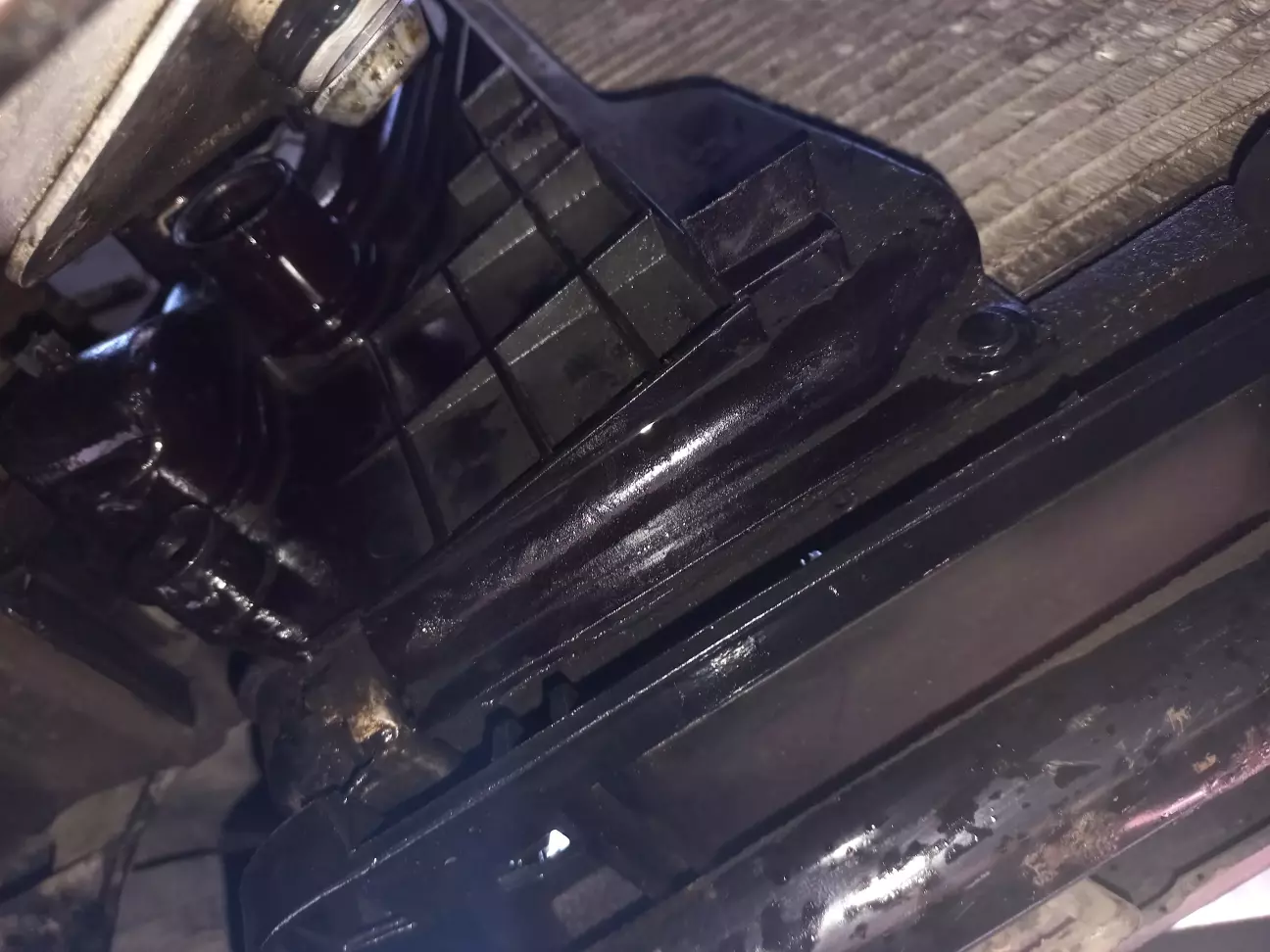 Фланці теплообмінника АКПП та нижні два отвори кріплення панелі.
