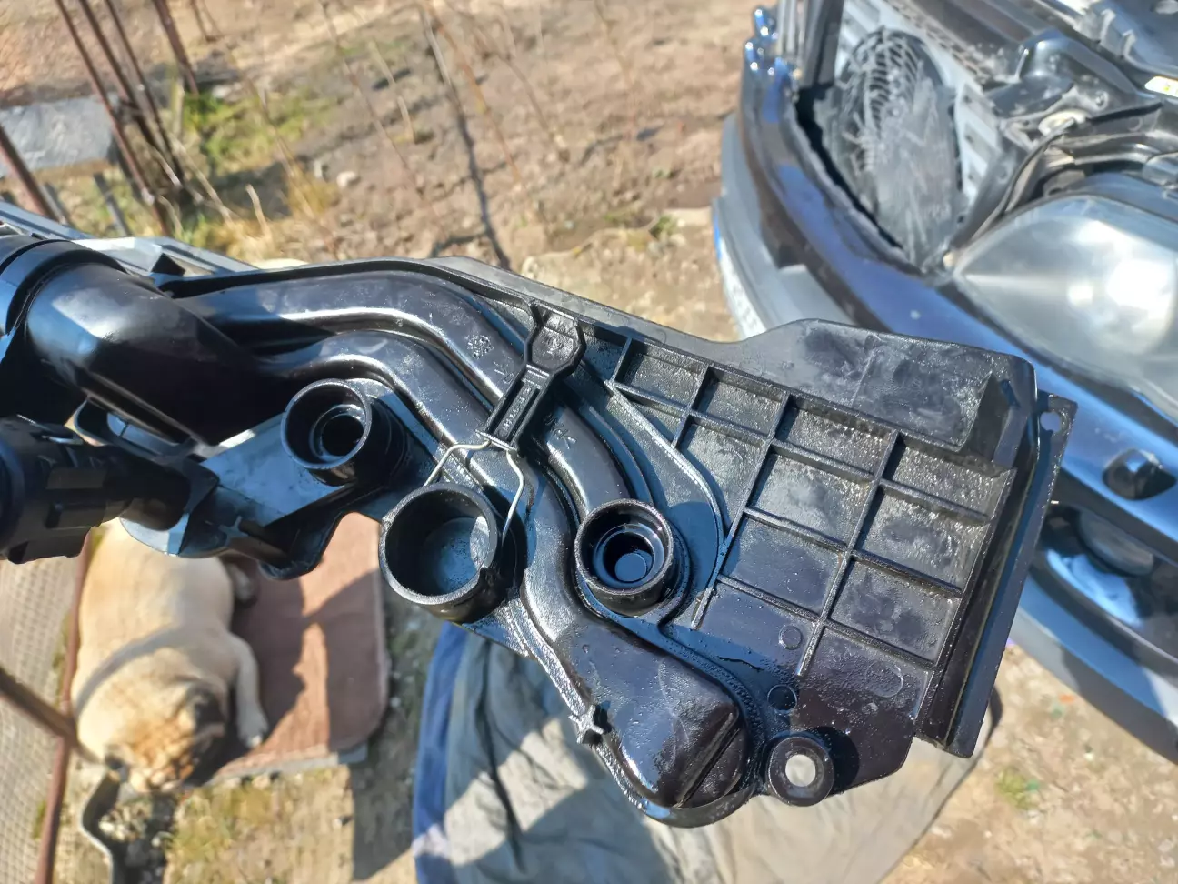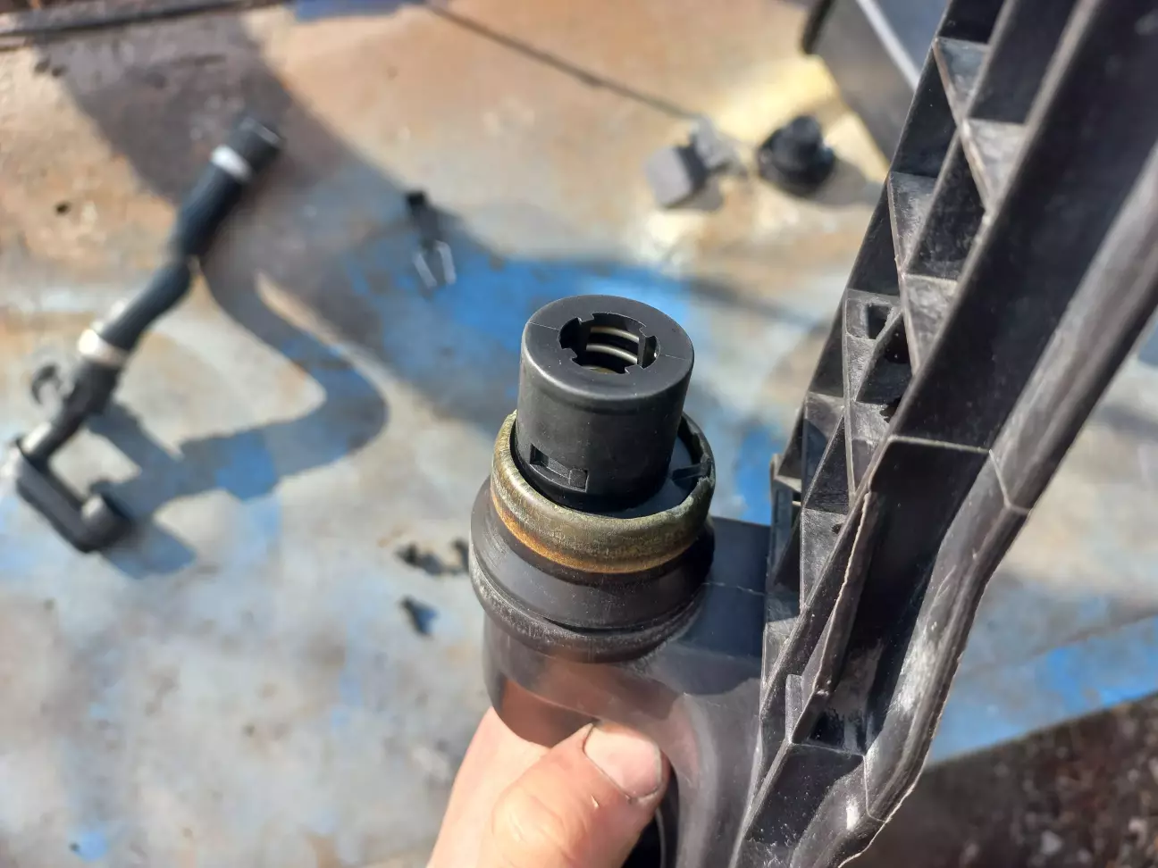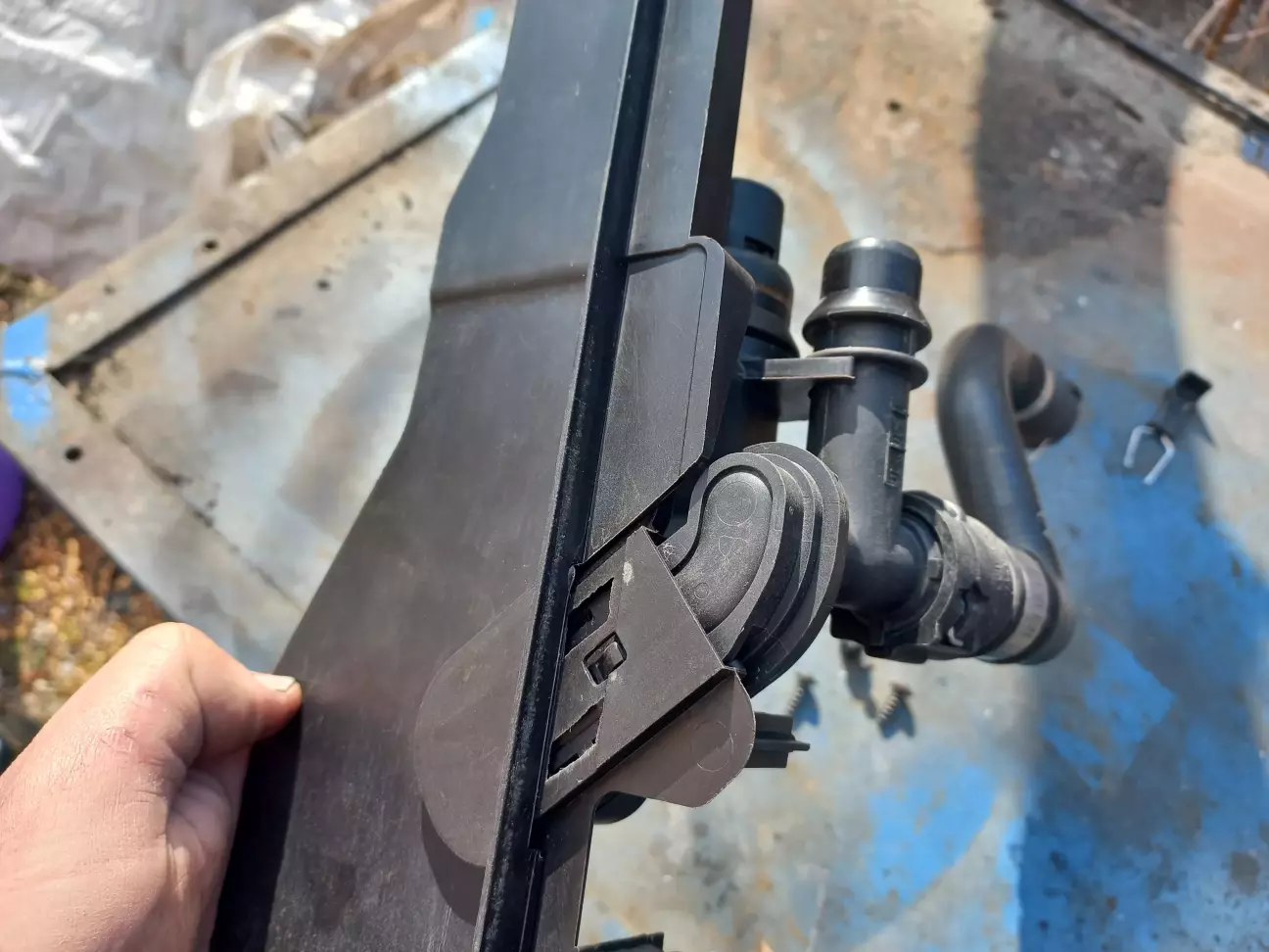 Як потім з'ясувалося, я не до кінця надів бачок! Хоча, він сів дуже туго, і давити сильніше було страшно, щоб не відламати пластикову панель радіатора. Тому цього разу я вирішив знімати і цю панель.