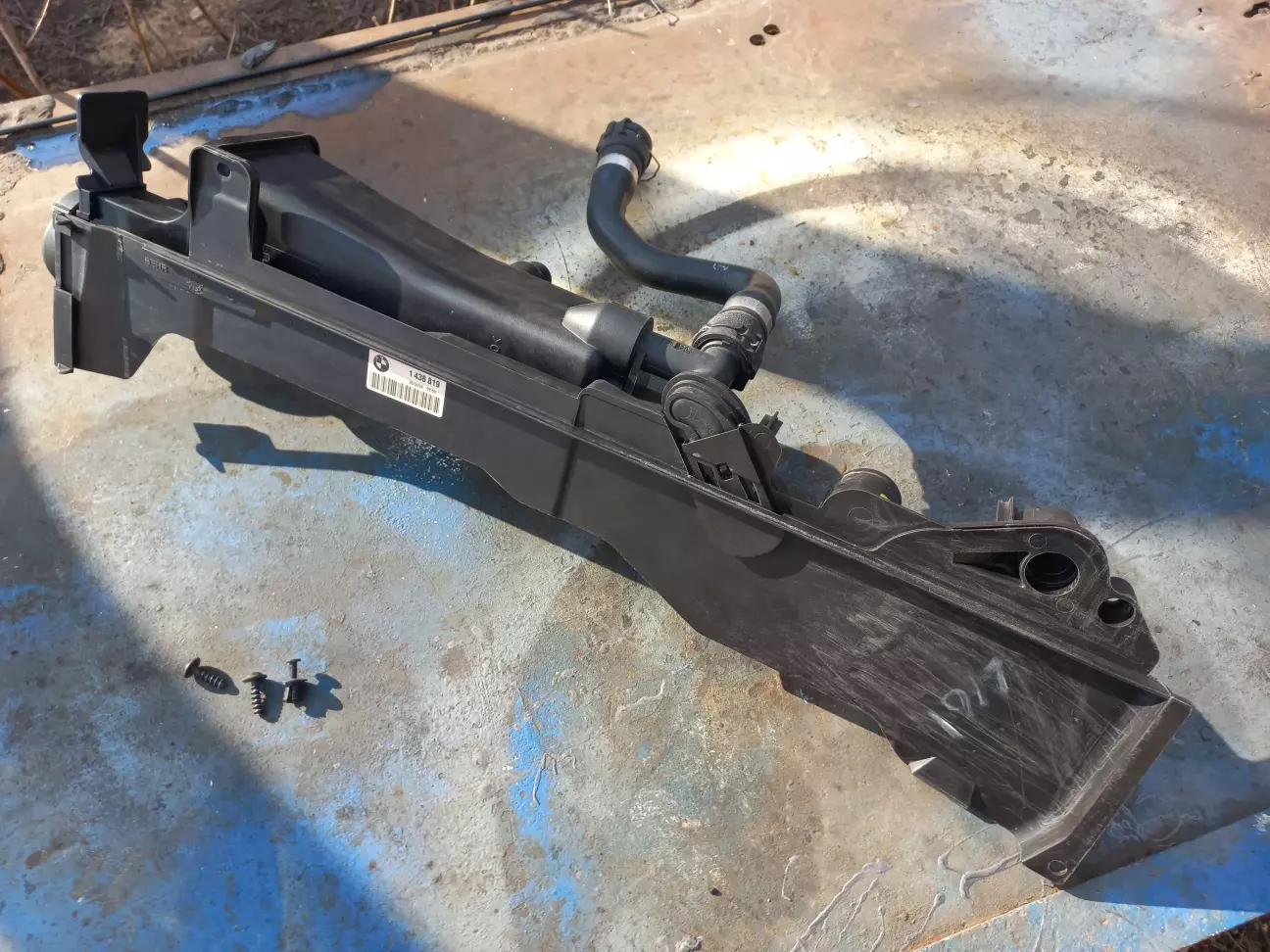 Вирішив зливати просто зі шлангів. Потім відкручуємо один торкс-саморіз під верхнім фланцем радіатора.