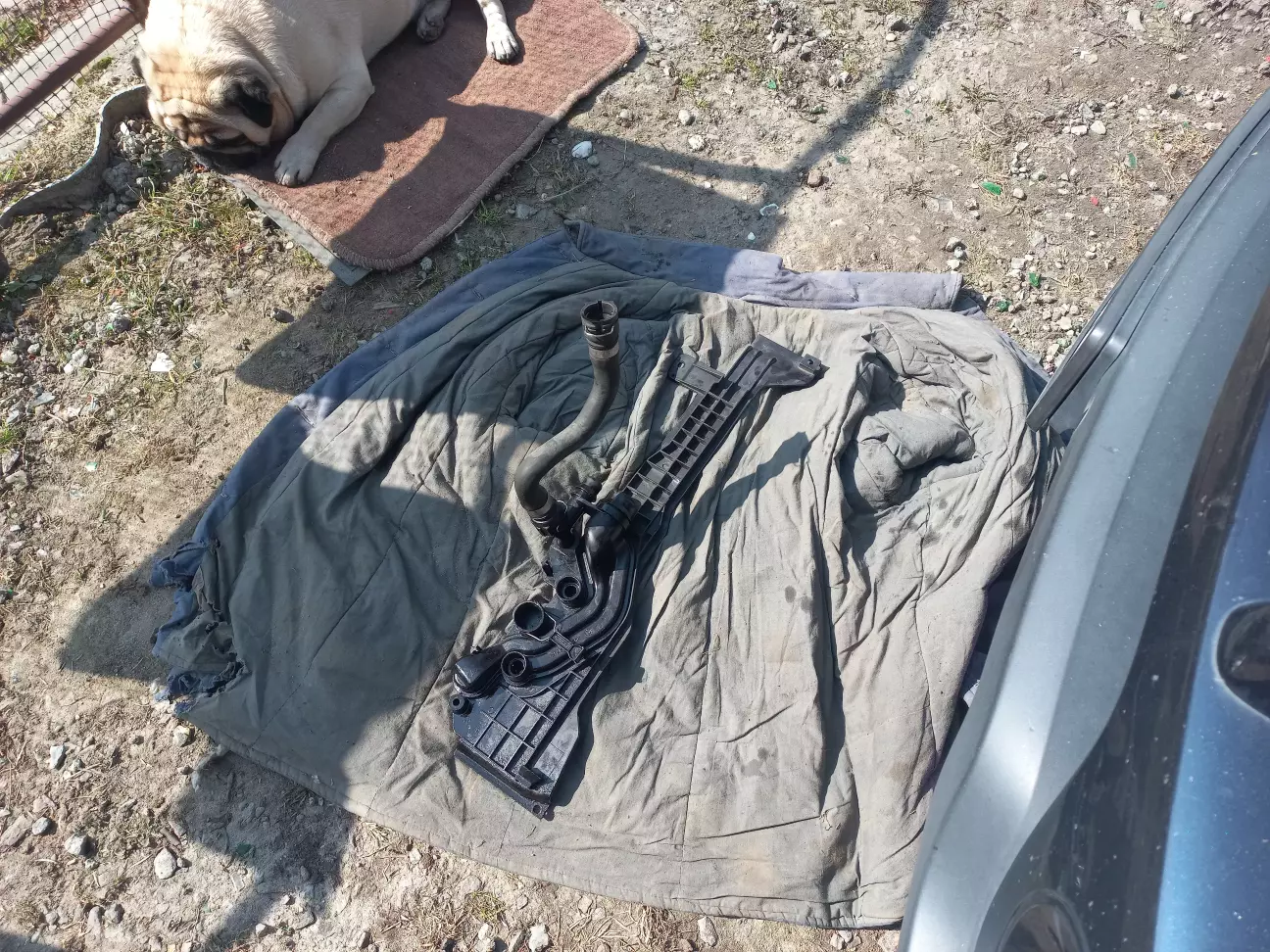 Дома знову все розібрав - мабуть, я можу вже ставити рекорди на швидкість розбірки повітропроводів. ) Але зверху все сухе. Як би не хотілося, але довлося знімати нижній щиток.
