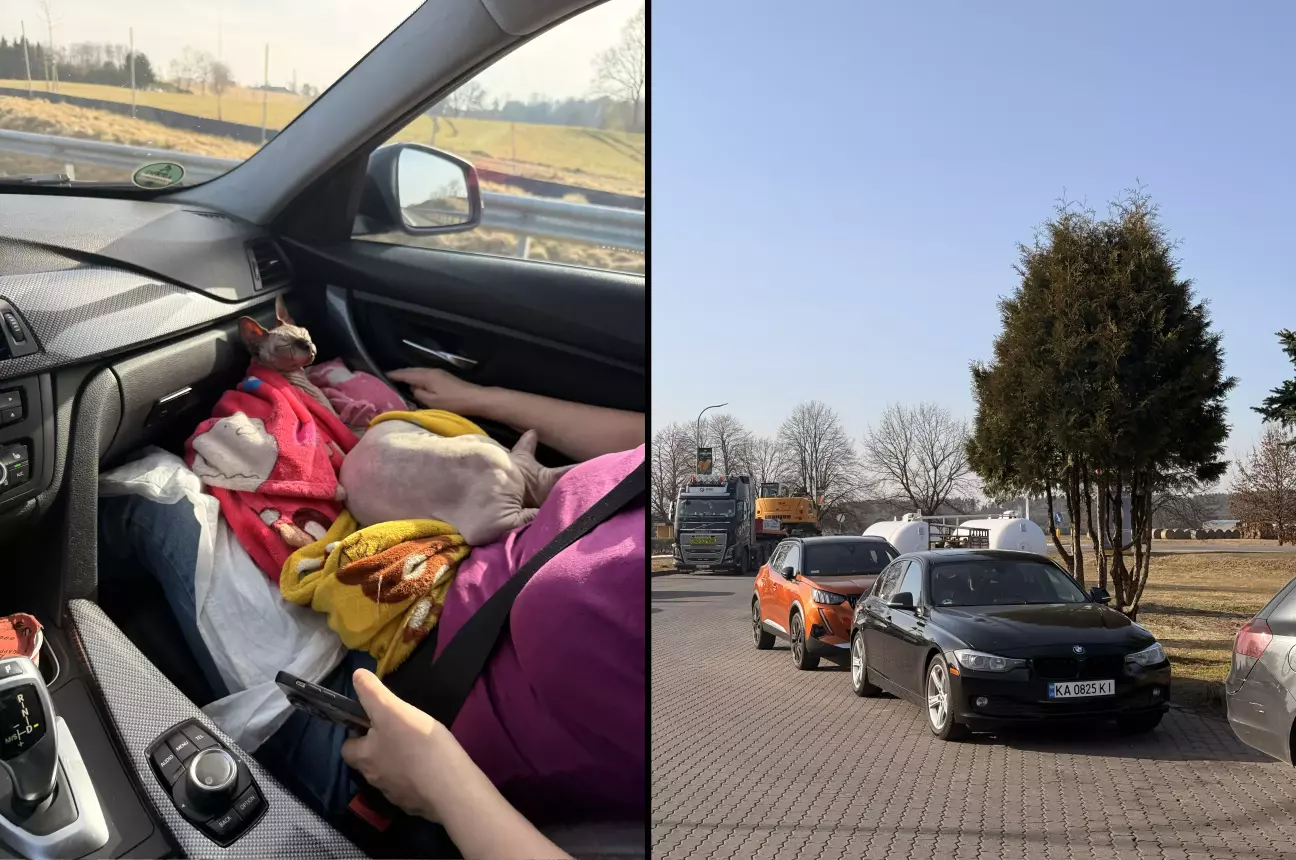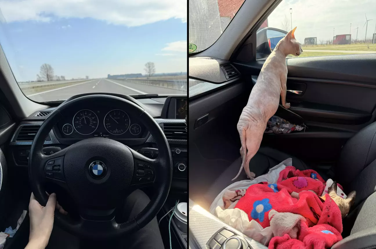 А далі вже поїхали додому, і попали на перезмінку на кордоні, то годину просто простояли десь +- на місці, та потім відкрили всі будки та пішло дуже швидко. Польки прикордонниці та наші з машини, яка їхала за нами, бігли дивитись котів, Ума яка в той час сиділа на лотку, не дуже зацінила, а Масяні сподобалось наче :D Стіки уваги!