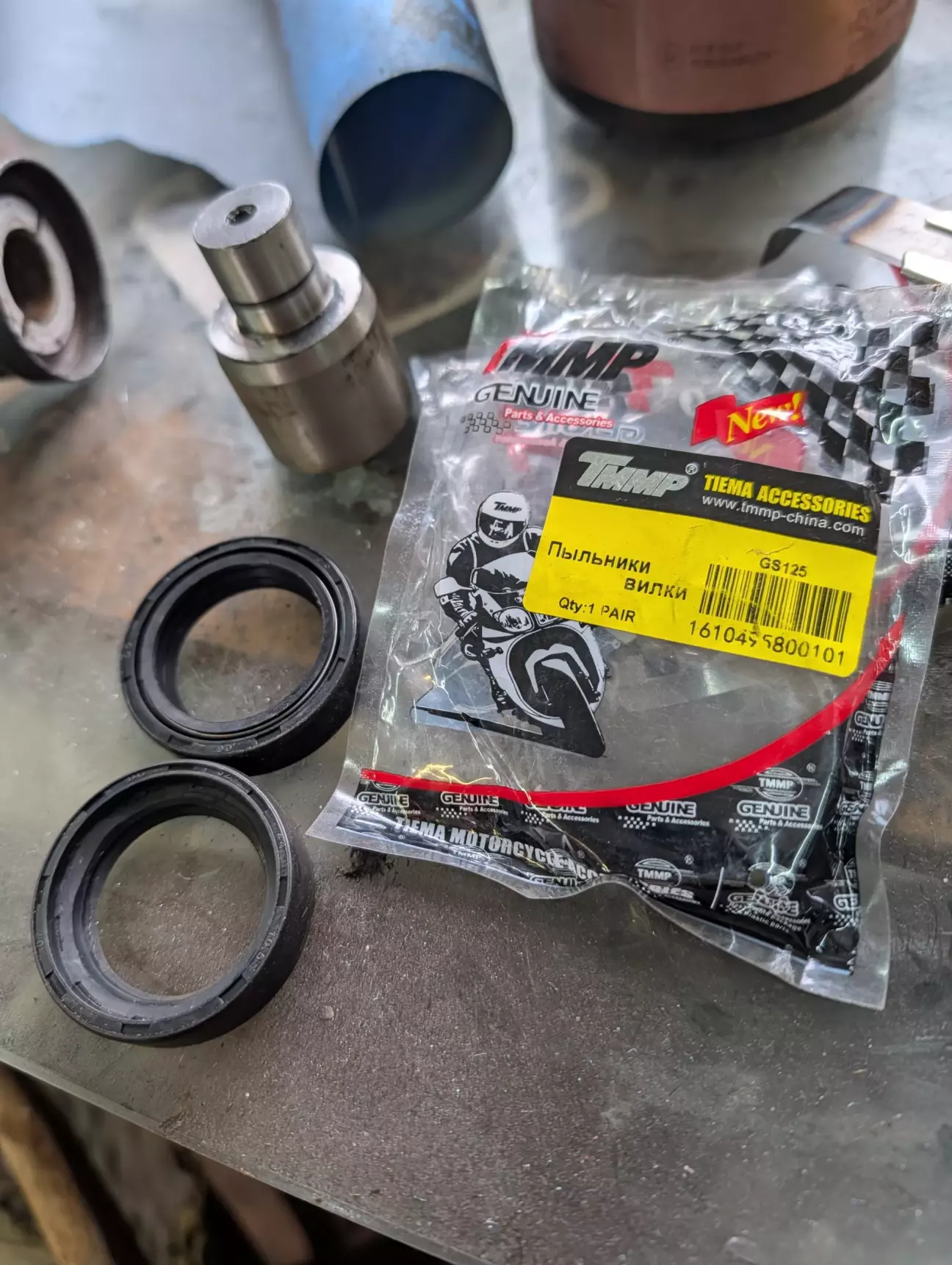 Сальники вилки якогось китайського мопеда в шкворня