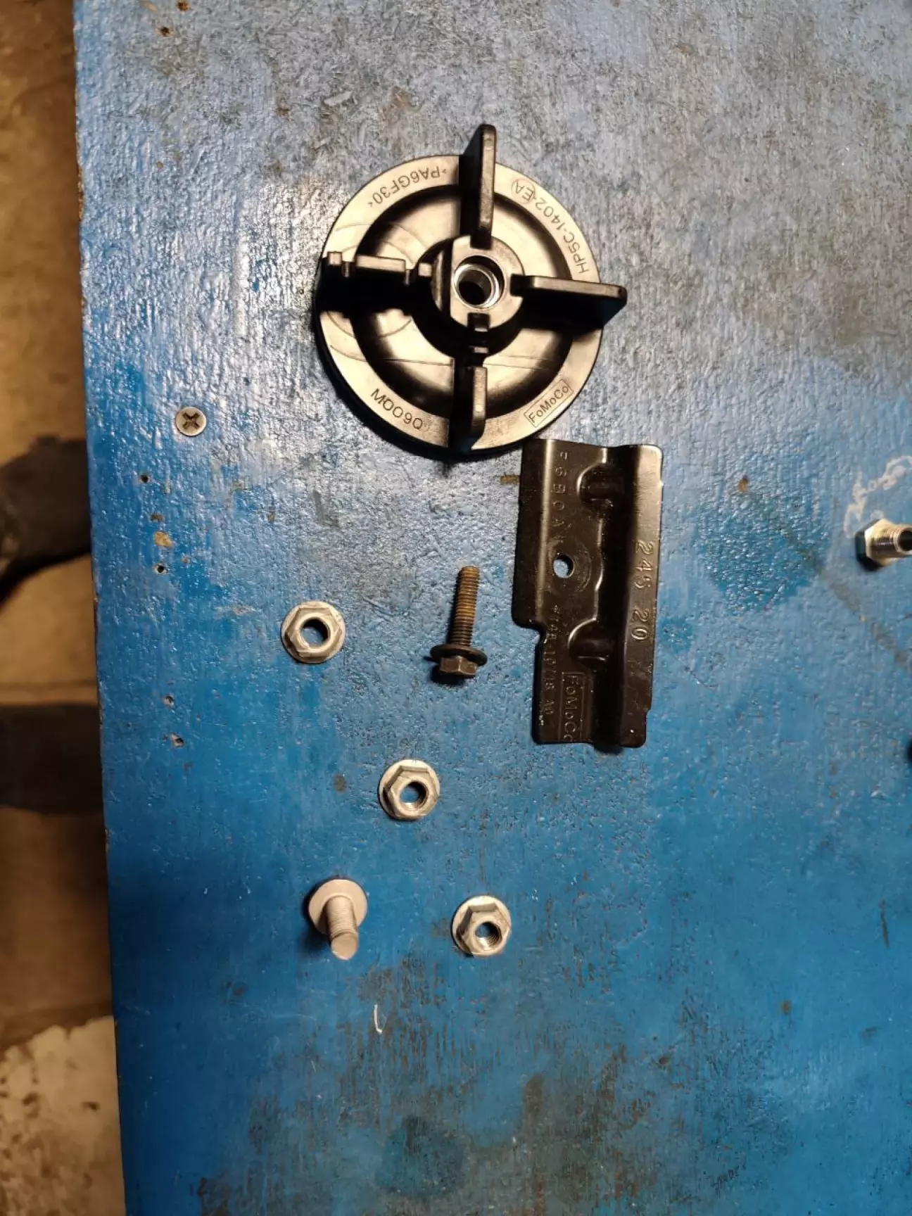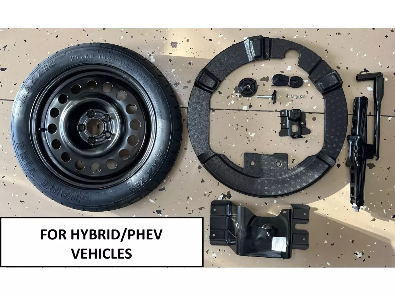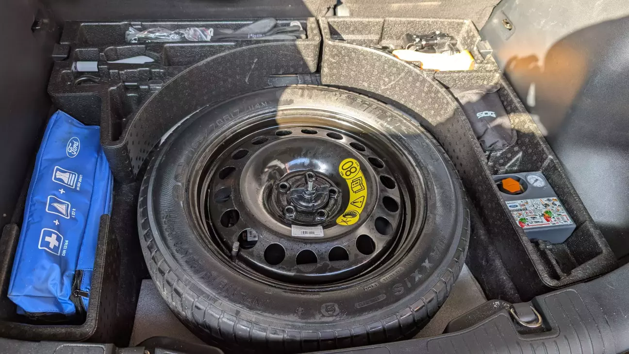 Докатку від звичайної куги/ескейпа чи іншої моделі форд поставити не вийде, бо у неї інший штампований чорний диск розрахований на те щоб розміститись над 12В акумулятором який ... стоїть в підпіллі багажника на місці докатки 😅.