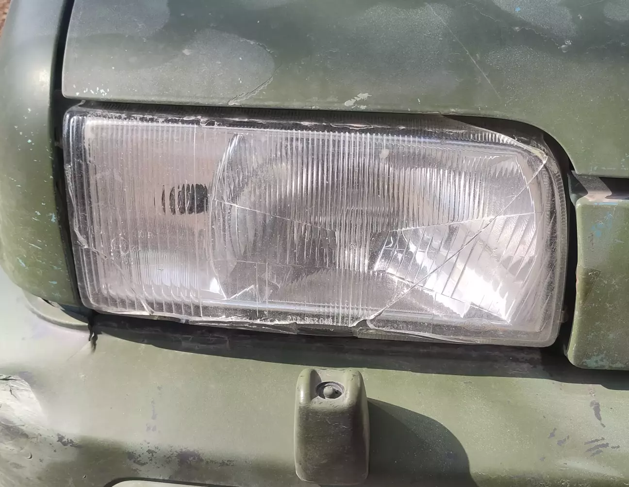 Око чіпляється за уламки розтрощеної правої пасажирської фари.