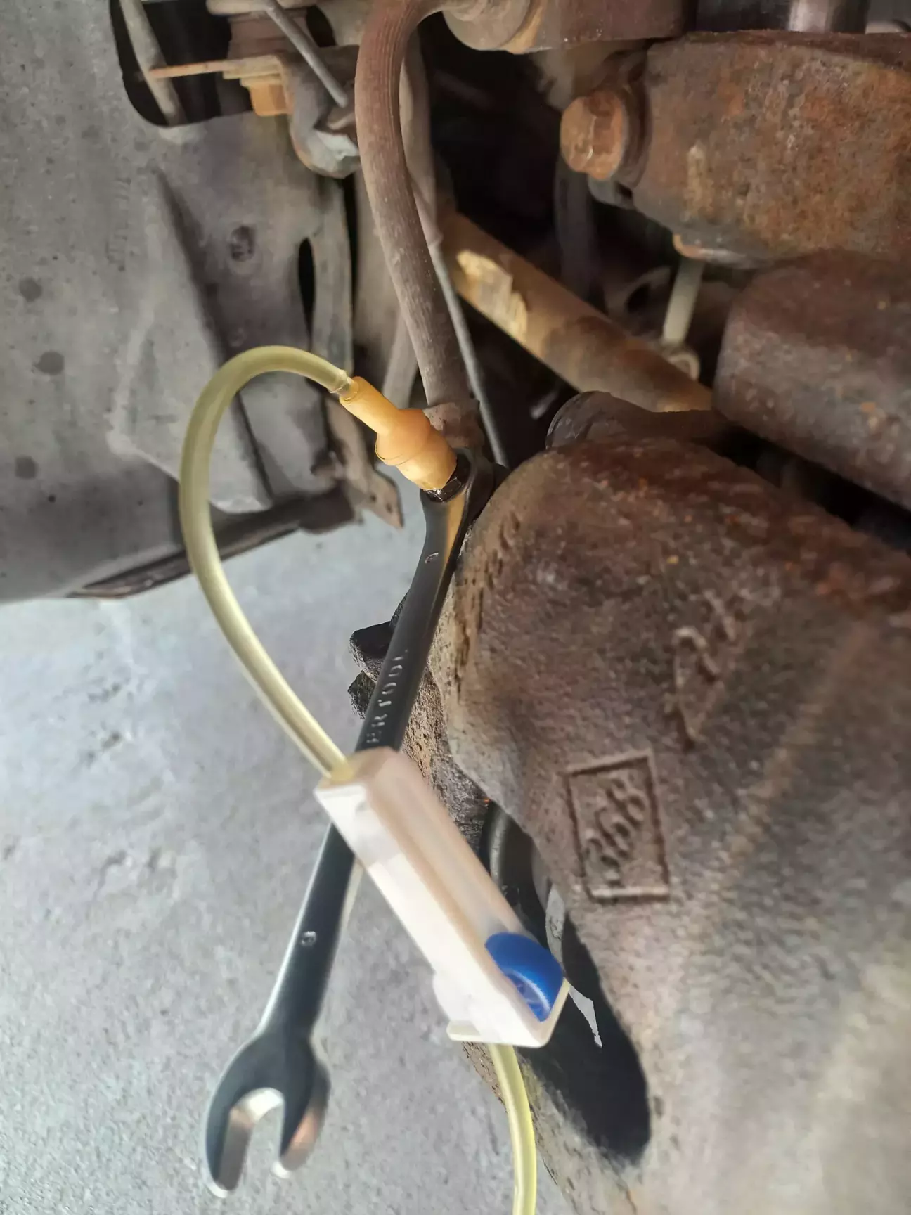 Починаємо з правого заднього і далі по діагоналі (ЗП-ПЛ-ЗЛ-ПП). Для штуцерів позаду треба ключ на 11, попереду - на 9 (Рено таке Рено.) Перед тим як щось відкручувати звісно проходимось щіткою і рідким ключем.