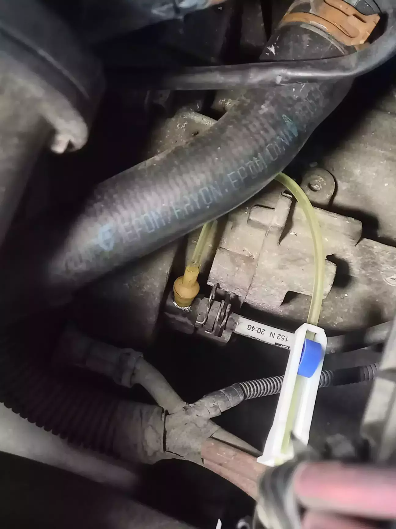 Щоб було зручніше добратися до необхідного штуцера під капотом зняв акум.