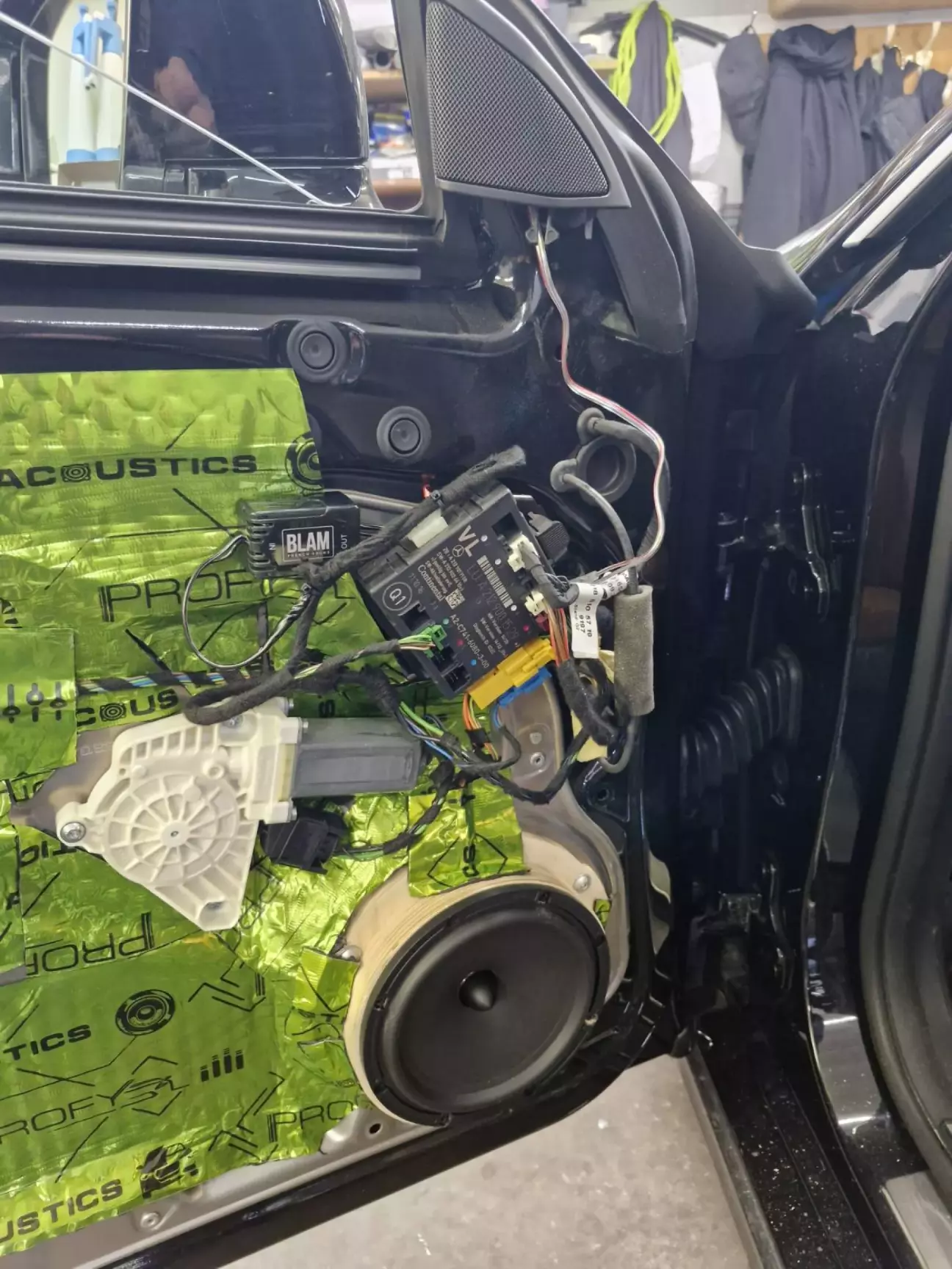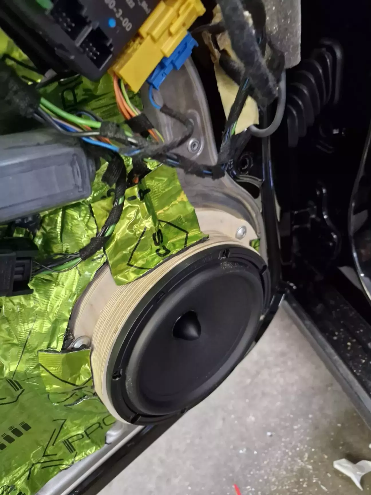 Один комплект на передні двері + один комплект на задні двері . Для якісної установки були вирізани подіуми під розмір кріплення нової акустики . Зняли стару - подіуми - поставили нову . Хвала Мерседесу - акустіка кріпиться до сталевих нутрощів дверей (є автівки де колонки висять просто на картах дверей) .