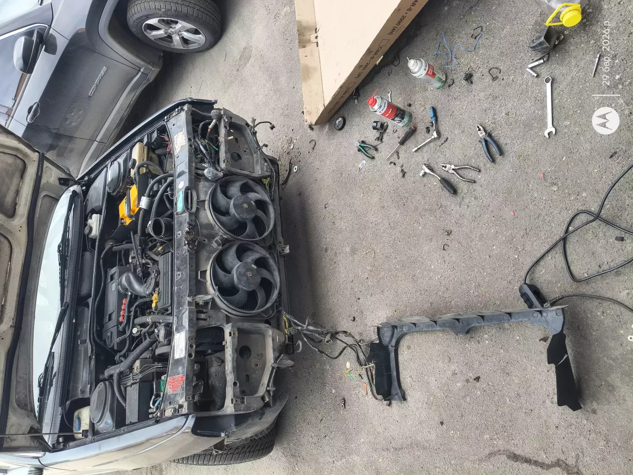Приїхав новий бампер, і за одно так як я хочу відновити систему кондиціонера замінив екран на два вентилятора та постав радіатор кондіка, навсе про все потратив цілий день, зняв старий бампер та екран, трохи перебрав проводку так як роз'єми на вентилятори були в плачевному стані замінив з Саманда думав всю косу але роз'єми не підійшли потрібно було перепіновувати, то прийняв рішення замінити частично