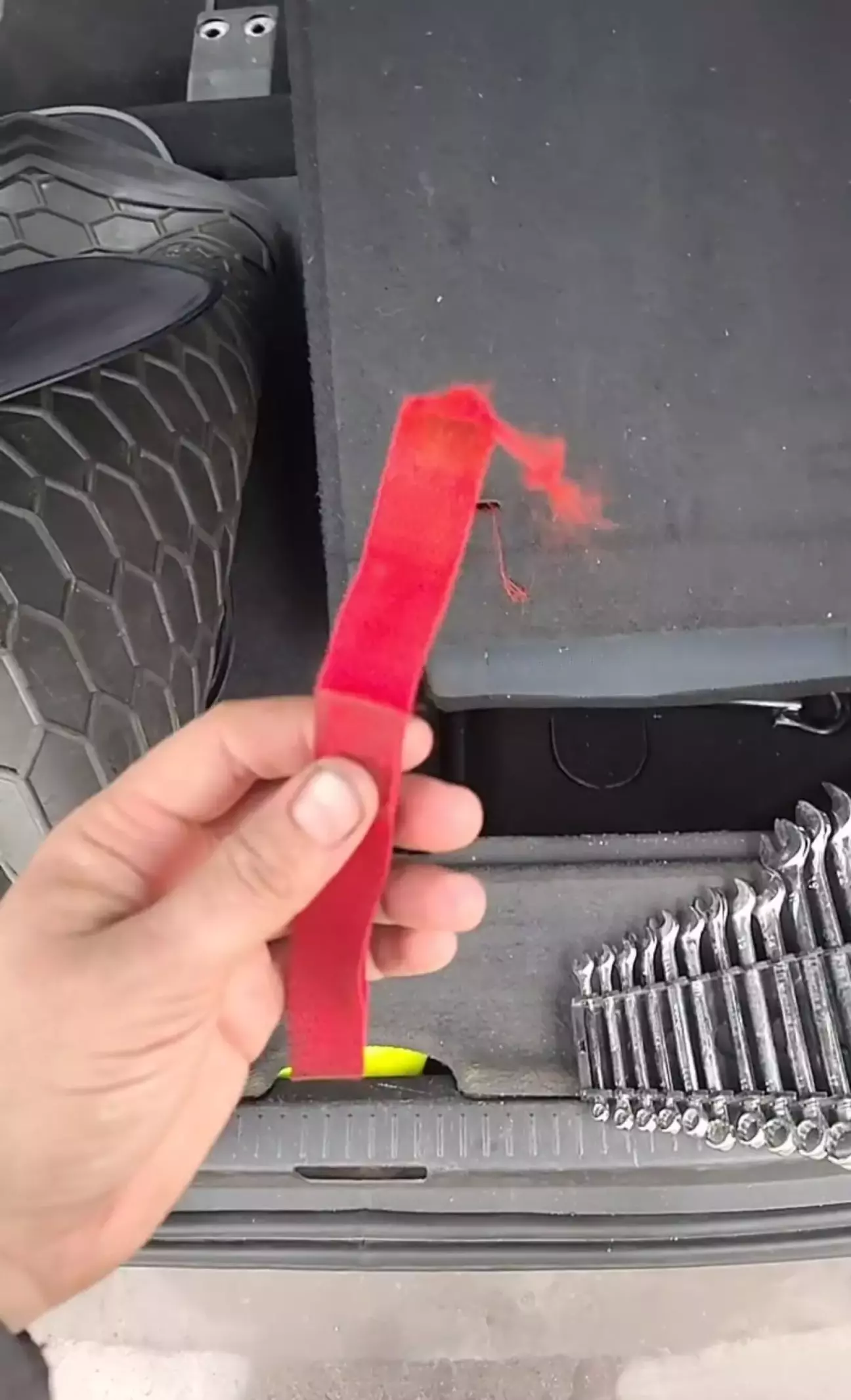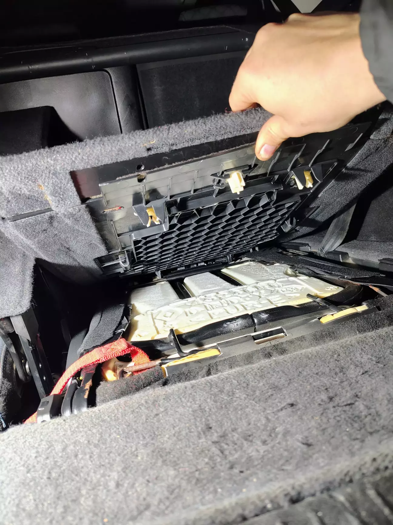 На днях при відкриванні заднього сидіння, обірвалася стропа, і прийшлось кумекать над вирішенням.