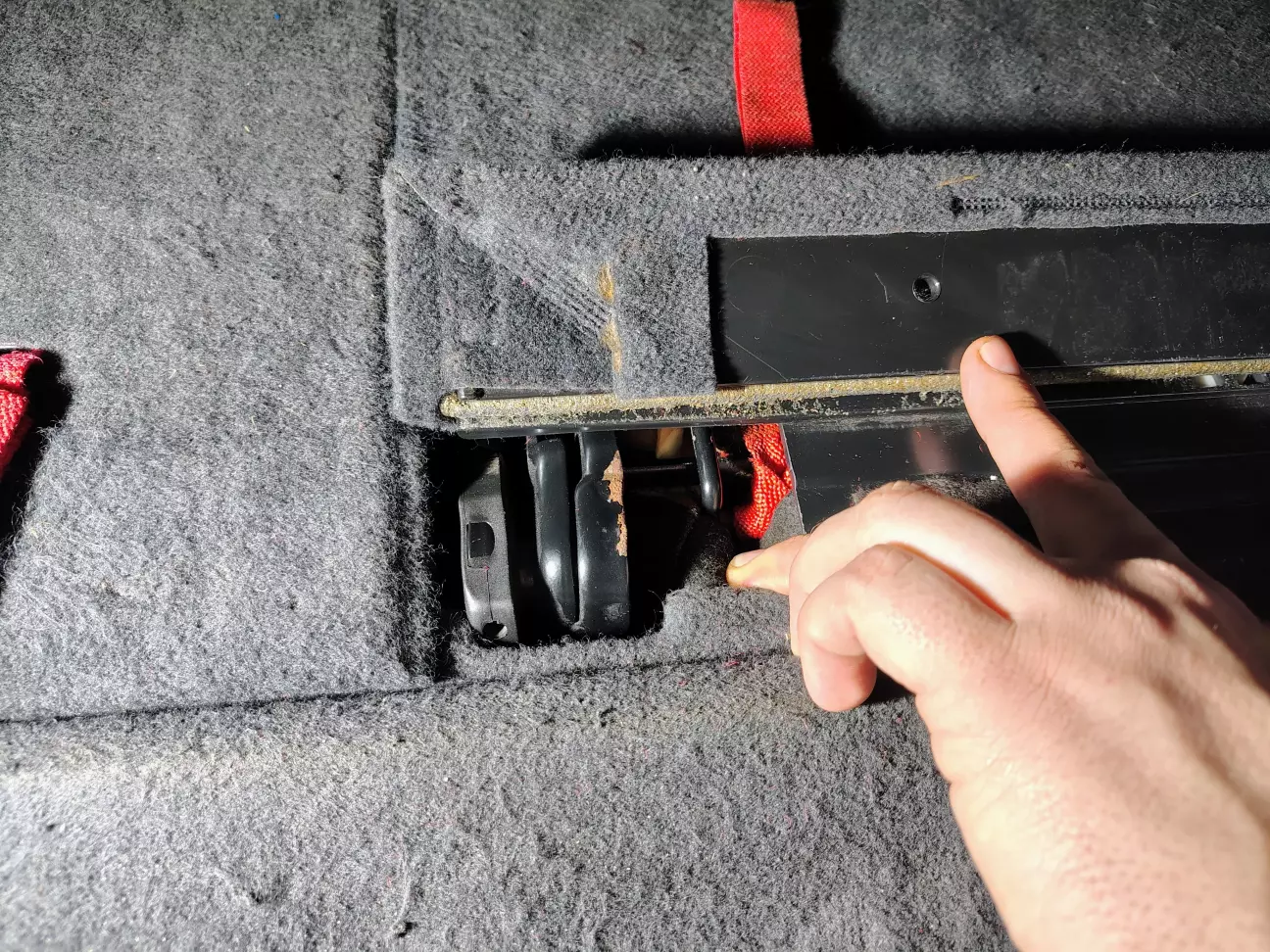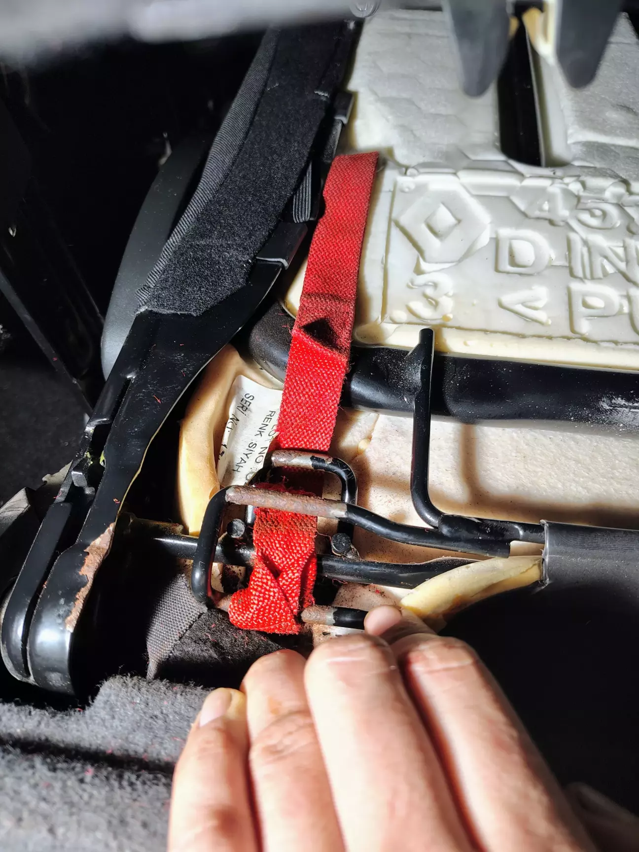 Першим ділом, обрізав "розпатрані" нитки, обсмалив запальничкою, і почав думати, як же воно там працює, і що тягне. В процесі роздумів, знайшов як зняти спинки, тобто фальш панелі, щоб отримати доступ до внутрішніх механізмів сидінь. Всі кліпси не відщьолкував, було достатньо 5 шт, щоб припідняти, і вже зшиту стропу, завести від ричаг, який змушує сидіння відкриватися.