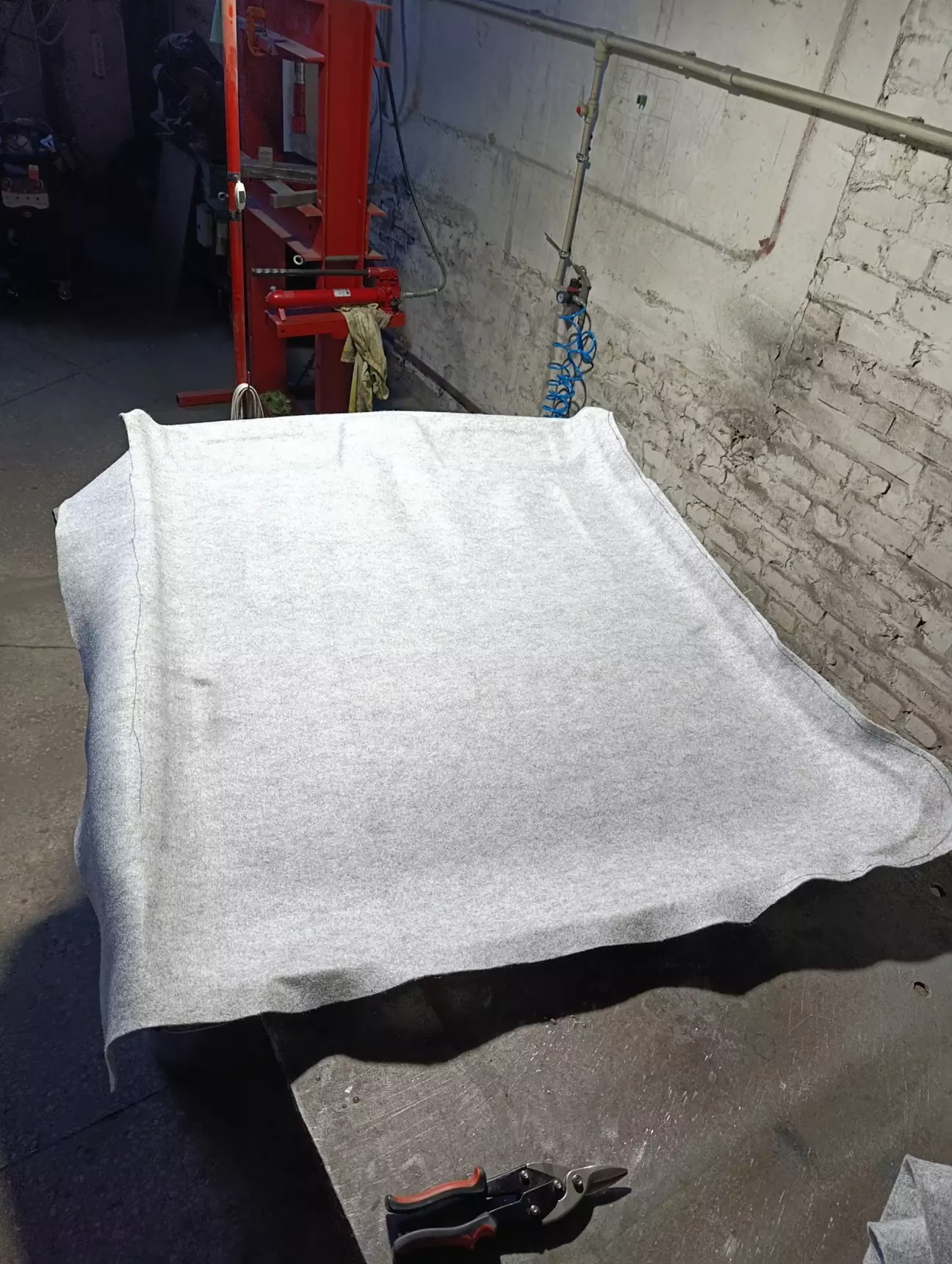Заводська тканина вже повністю висіла. Трималась лише на ручках та окантовкі люка.