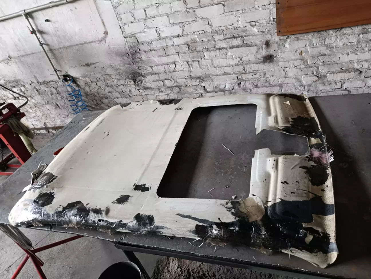 Зачистив щіткою по металу залишки старого поролону та витер розчинником. Один кут був взагалі відламаний. Тому довелось придбати ще скловолокно та епоксидний клей. З задньої сторони все пролеїв.