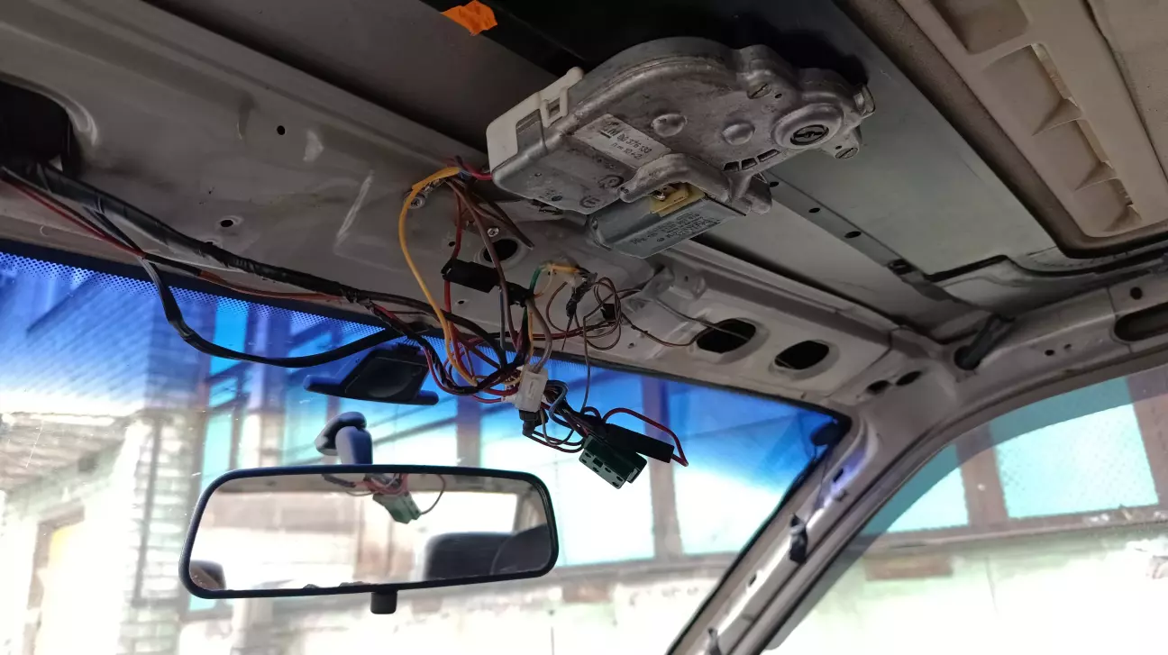 Це видно по кронштейну, кріпленню двигуна люка (його відсутності) та вирізаному куску стелі під пластик.
