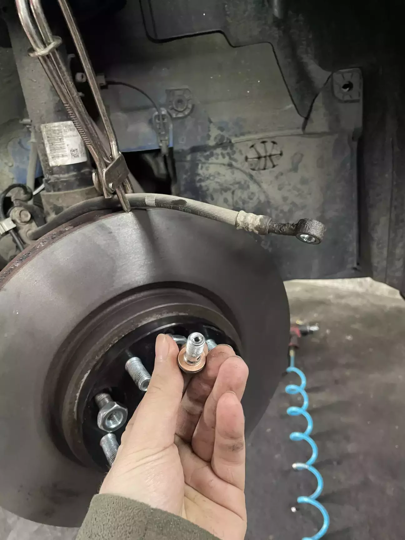 Шланг залишаєм заводський, болт також, якщо фарба є у місці де прикручується гальмівний шланг треба знімати, бо буде слинить тормозуха, і треба щоб була ідеально плоскість.