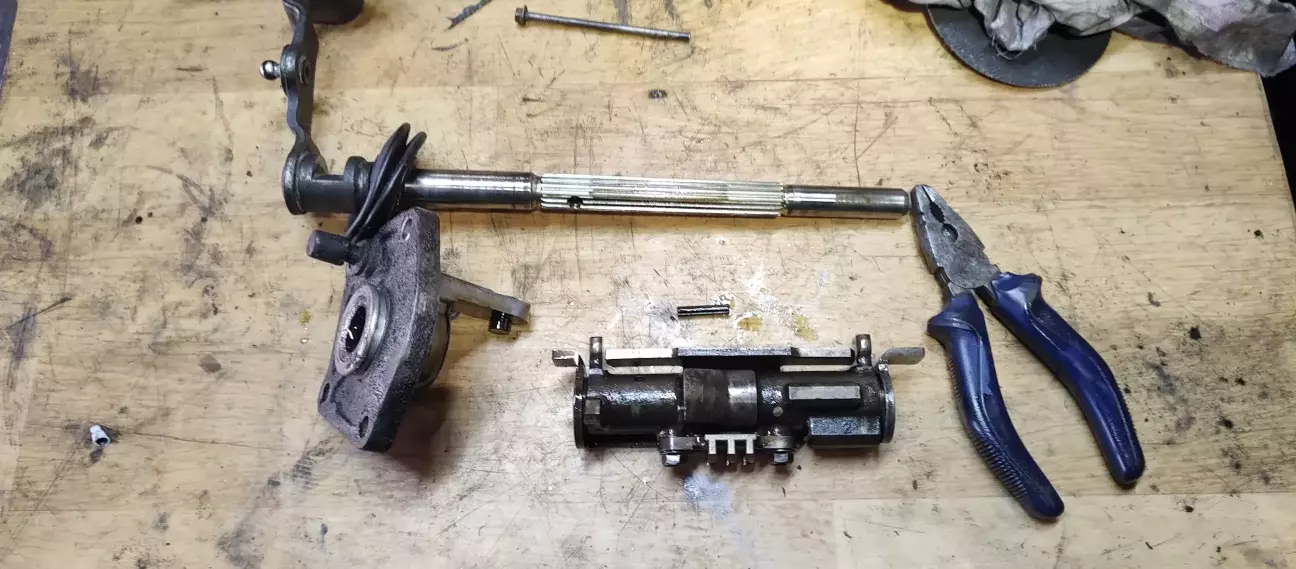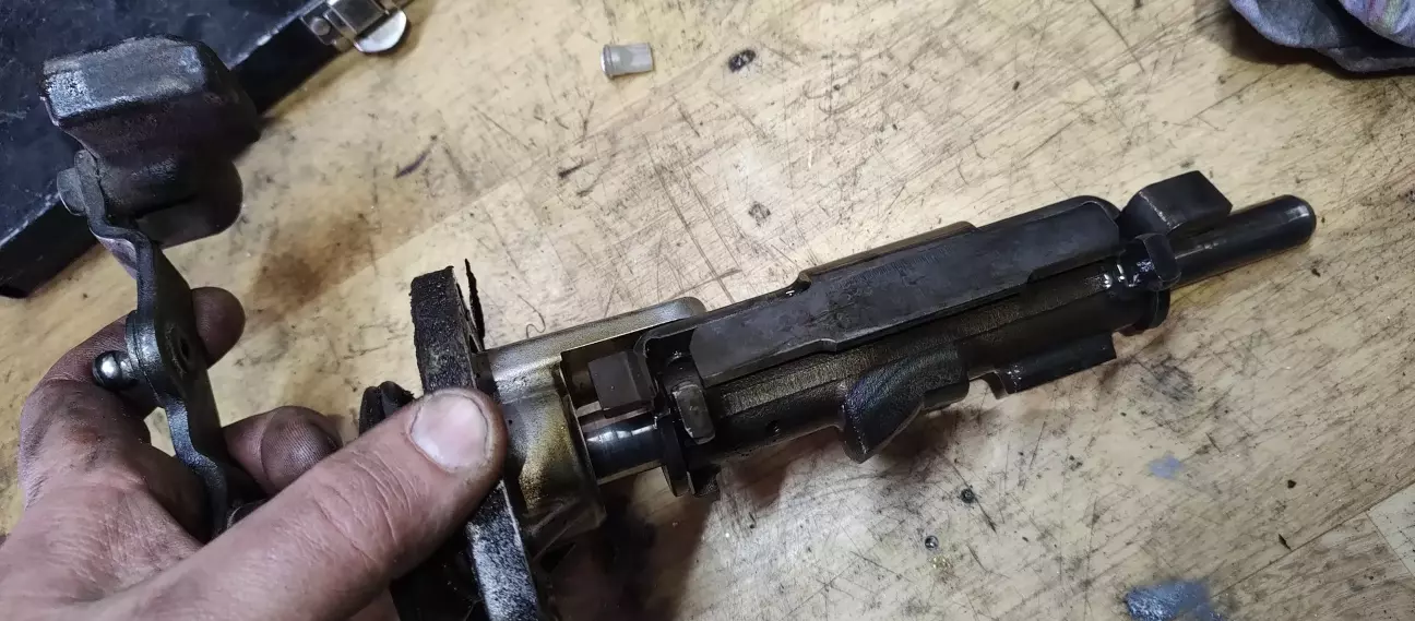 Тепер уважно запам'ятатовуемо в яких положеннях механізм і розбираємо далі,вибиваємо штифт