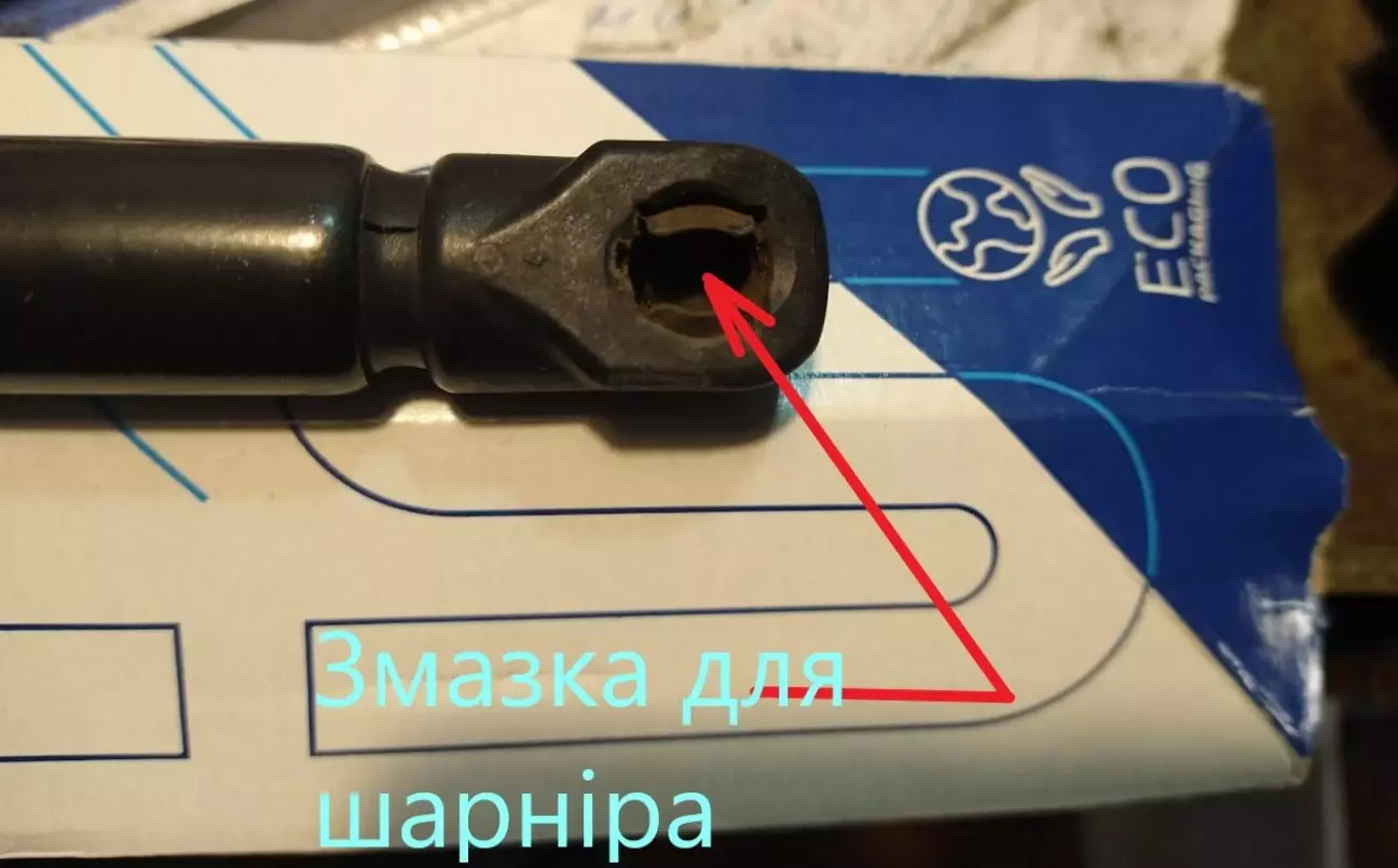 В нових амортизаторах STABILUS в містях куди заходить шарнір "серединка" було нанесена ,біла змазка, її треба рівномірно розрівняти.