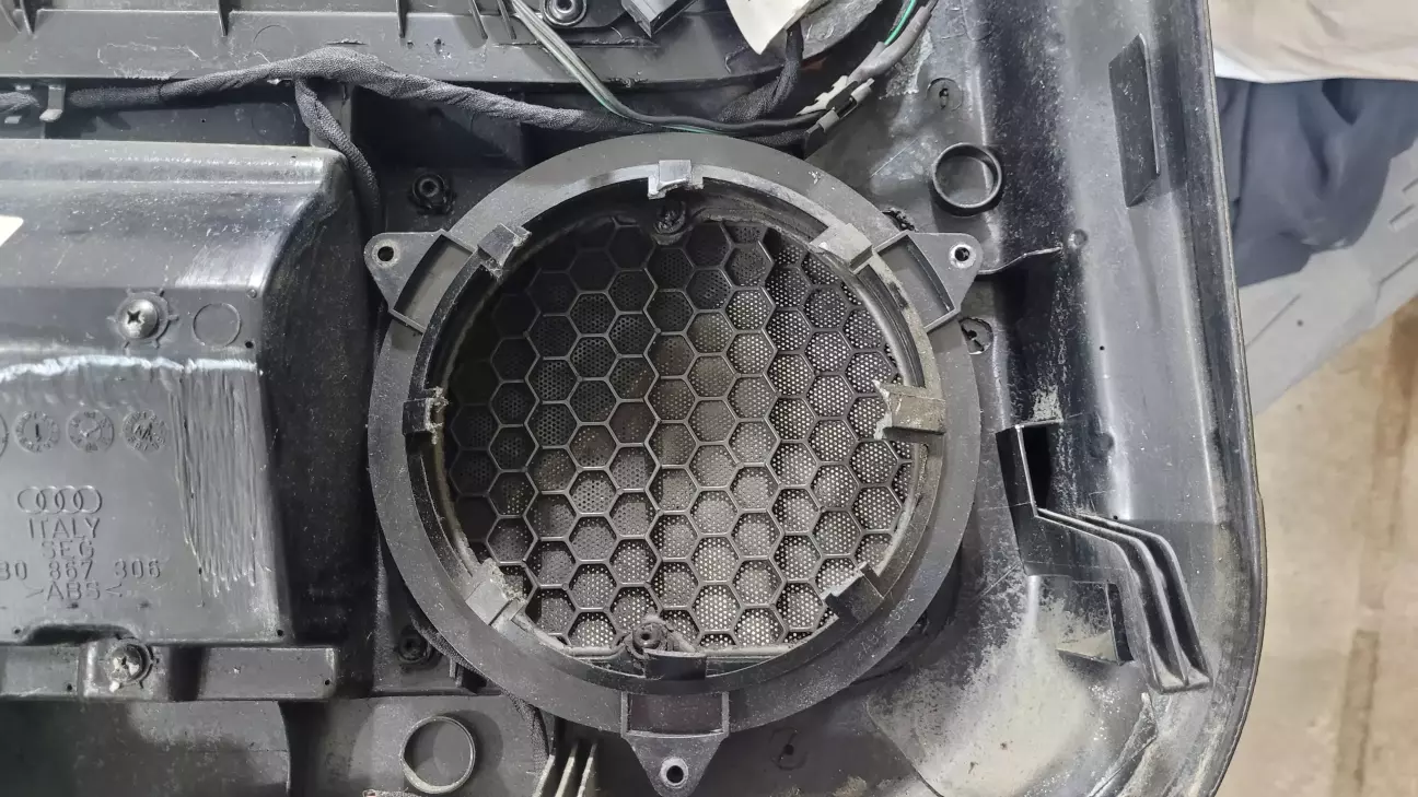 Знімаємо остатки старого динаміка так як там є звичані отвори для кріплення потипу простих динаміків