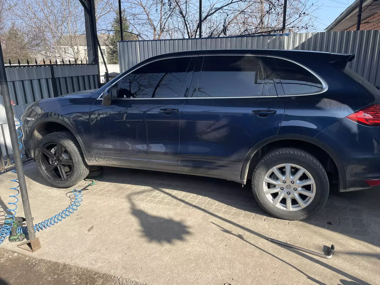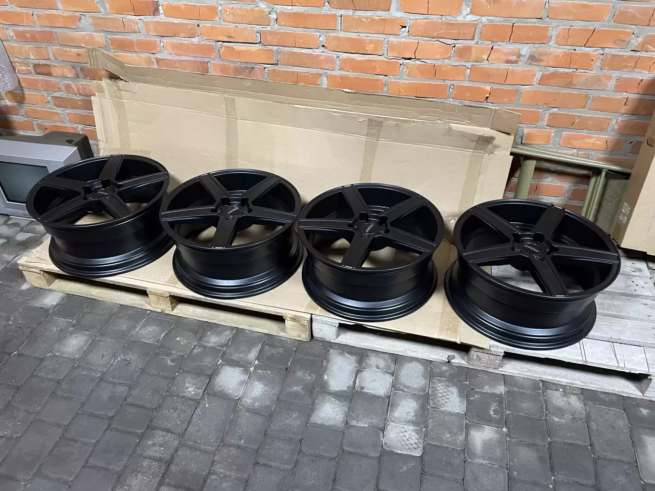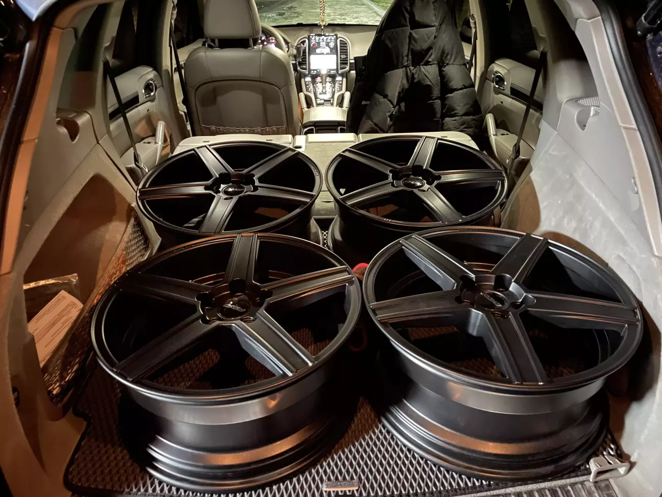 Заміну дисків планував ще з початку покупки машини, не подобались вони мені… хотів якісь великі так як розумів що радіус можливий навіть 21, але з нашими дорогами максимум це 18 такий як рідний, або ж альтернатива 19. Вибір був не великий або ж якщо і був, то мені вони не подобались, або ж цінник був під 100к. В результаті гортаючи оголошення я зустрів гарні диски чорного кольору, свіжо викрашені. Цінник адекватний, і стан ідеальний. За допомогою чaту GPT я підлаштував диски щоб мати уяву який буде фінальний вигляд. Який точно виробник дисків сказати не можу, написано Маден Італі і на тому добре. Радіус 19.