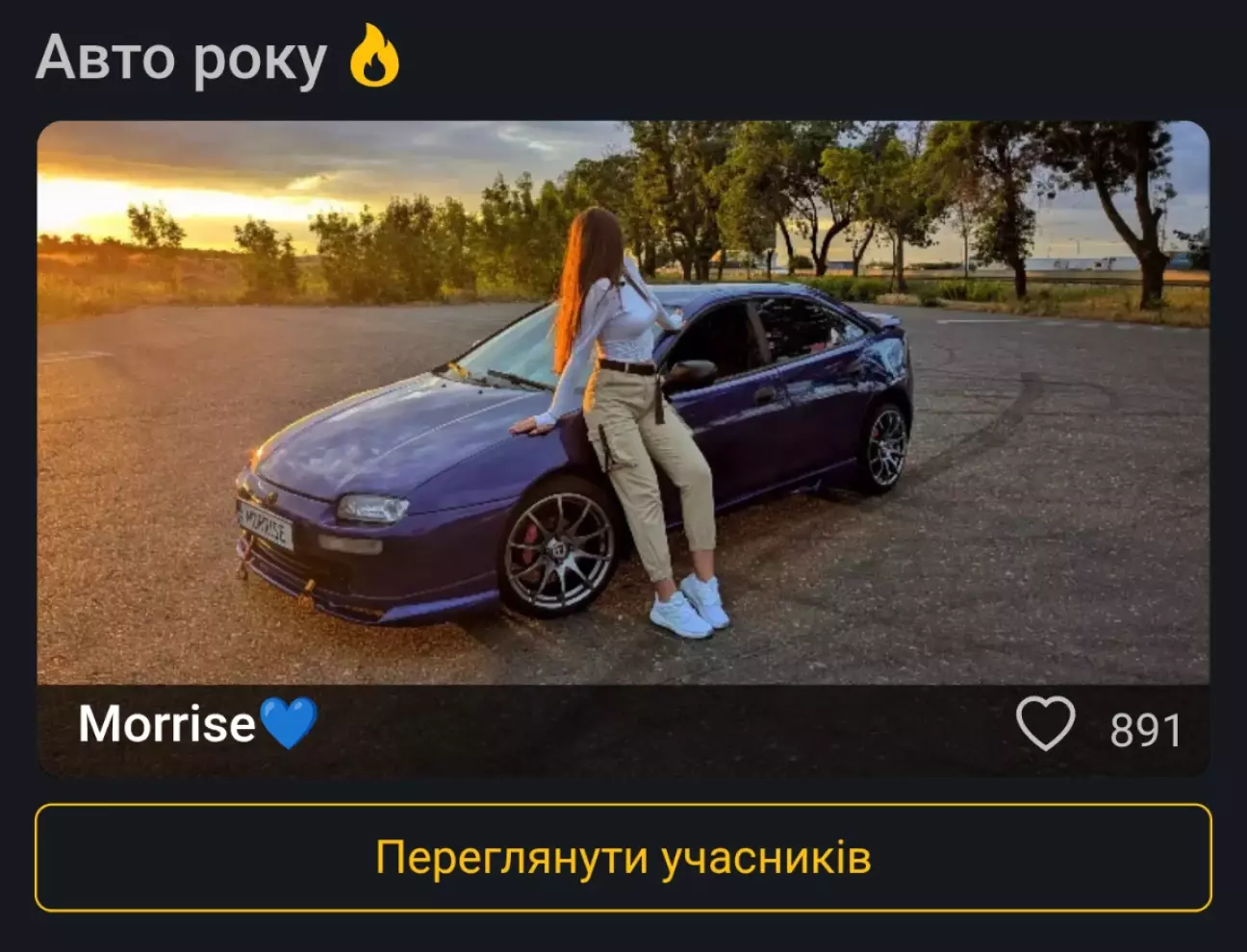 І для мене ця перемога - дуже значуща подія. Хтось мене зрозуміє, особливо ті, хто віддав голос за мою машину. Саме ви додали до її історії нову главу - до історії, яку наповнюю сенсом я.
