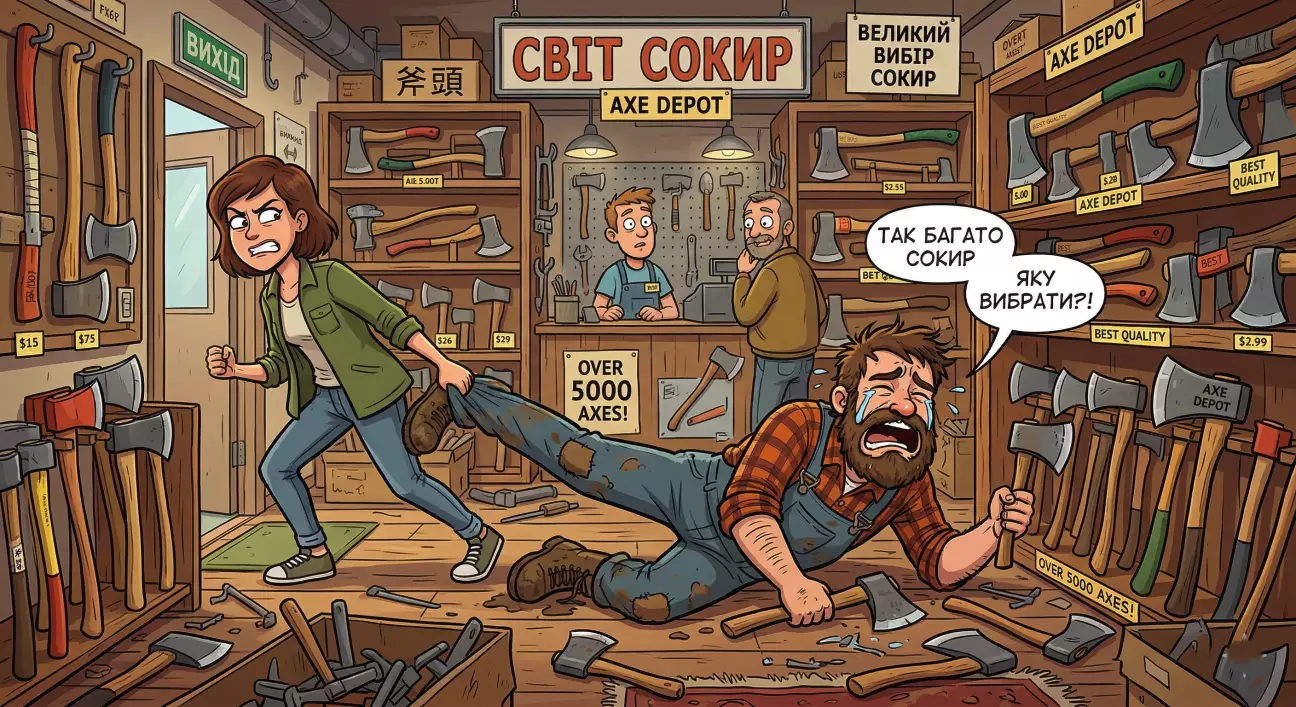 Кожен похід в Епіцентр закінчувався тим, що дружина забирала мене з відділу з тими клятими сокирами як дитину, якій не купили клятого кіндера, але з тією різницею, що дитина хотіла шоколад, а я — щось, чим можна розвалити черепушку якомусь зомбі (в теорії).